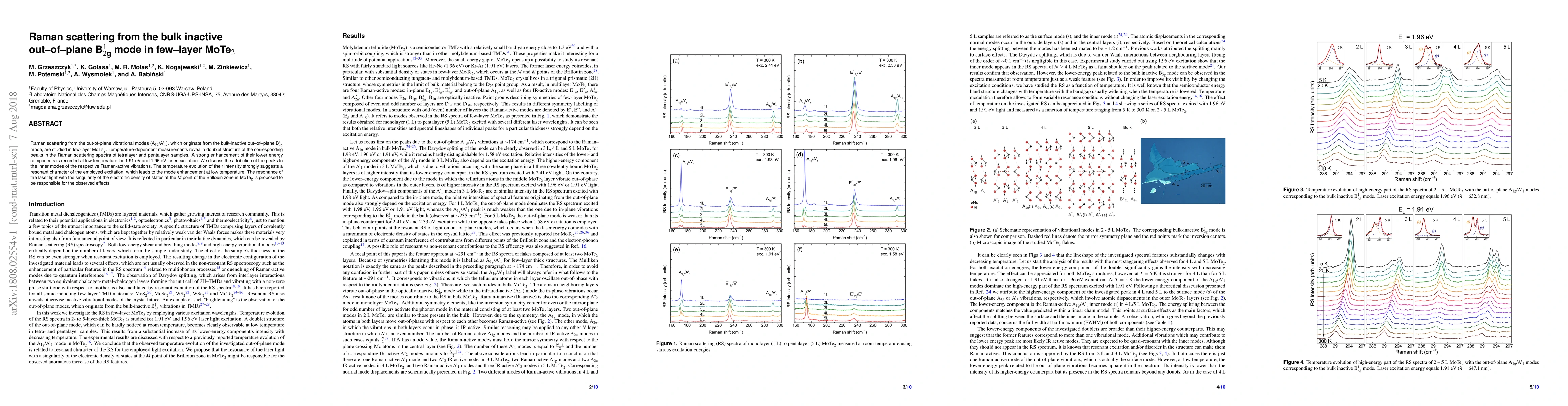 Researchers studied Raman scattering in few-layer MoTe2 at low temperatures, revealing a doublet structure of peaks that enhance with 1.91 eV and 1.96 eV laser excitation.