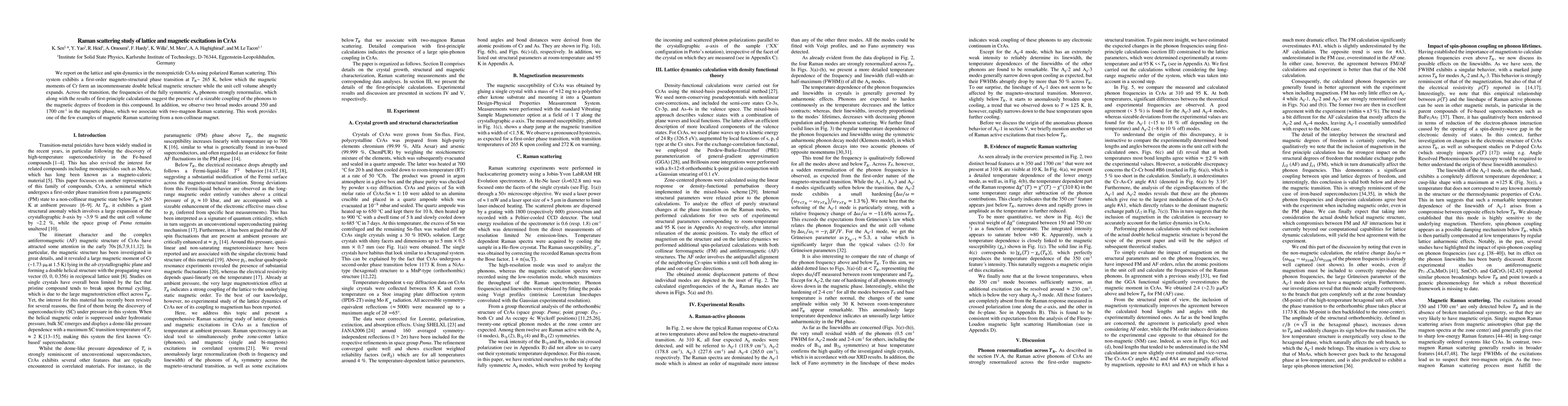 This study uses Raman scattering to investigate the lattice and magnetic excitations in CrAs, revealing a strong coupling between phonons and magnetic degrees of freedom during a magneto-structural phase transition. The research identifies two-magnon Raman scattering modes, highlighting the compound's unique magnetic properties.