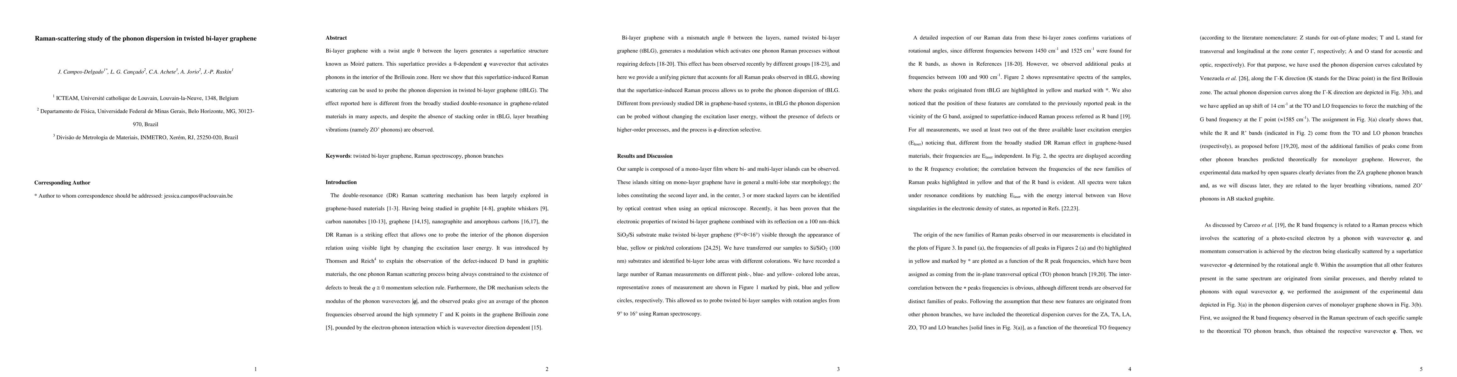 Researchers used Raman scattering to study phonon dispersion in twisted bi-layer graphene, discovering layer breathing vibrations despite the absence of stacking order. This method provides a new way to probe the material's internal dynamics.