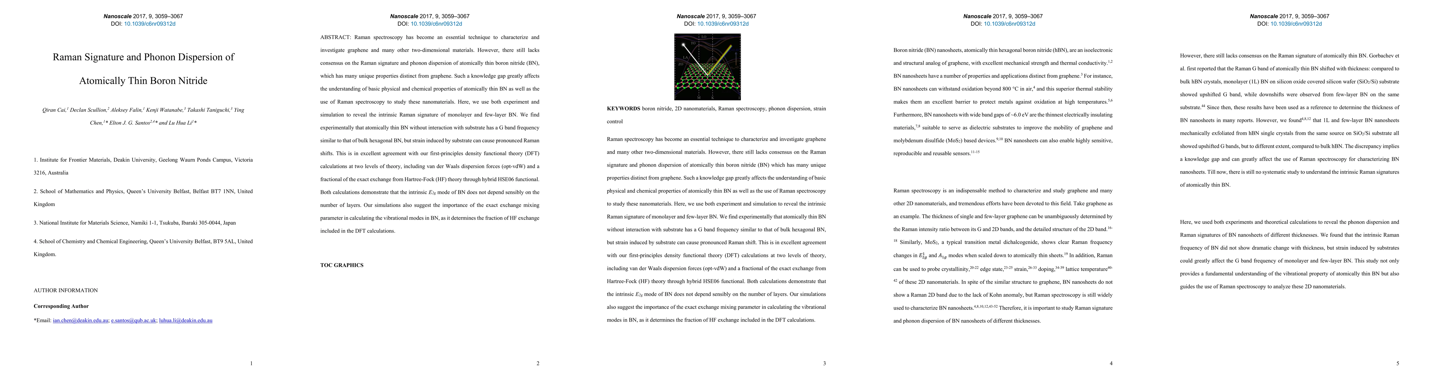 This paper investigates the Raman signature and phonon dispersion of atomically thin boron nitride (BN) using experimental and computational methods, finding that strain from substrates induces significant Raman shifts. Theoretical calculations show the intrinsic E2g mode remains consistent across BN layers, highlighting the role of exact exchange in DFT calculations.