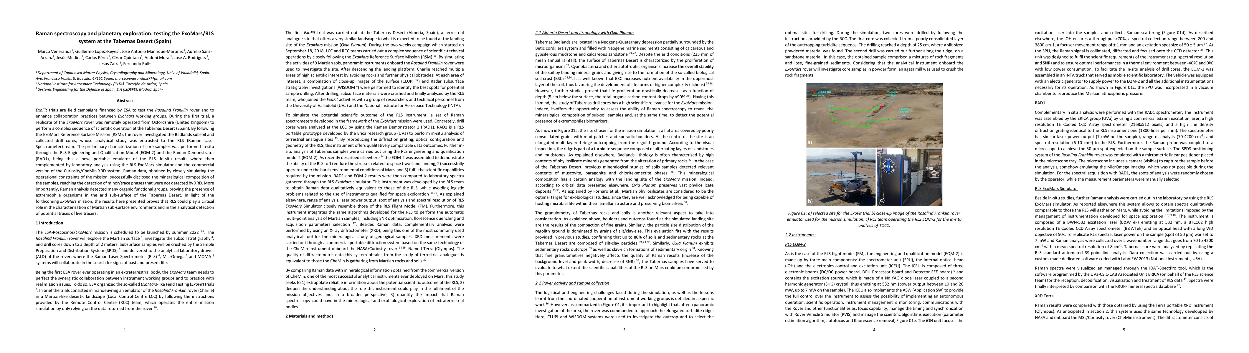 This paper reports on the ExoFit trials testing the ExoMars Rosalind Franklin rover's Raman Laser Spectrometer (RLS) in the Tabernas Desert, Spain, revealing the RLS's capability to detect mineralogical and organic compounds in situ. The results suggest the RLS could be crucial for future Martian exploration, identifying potential signs of life.