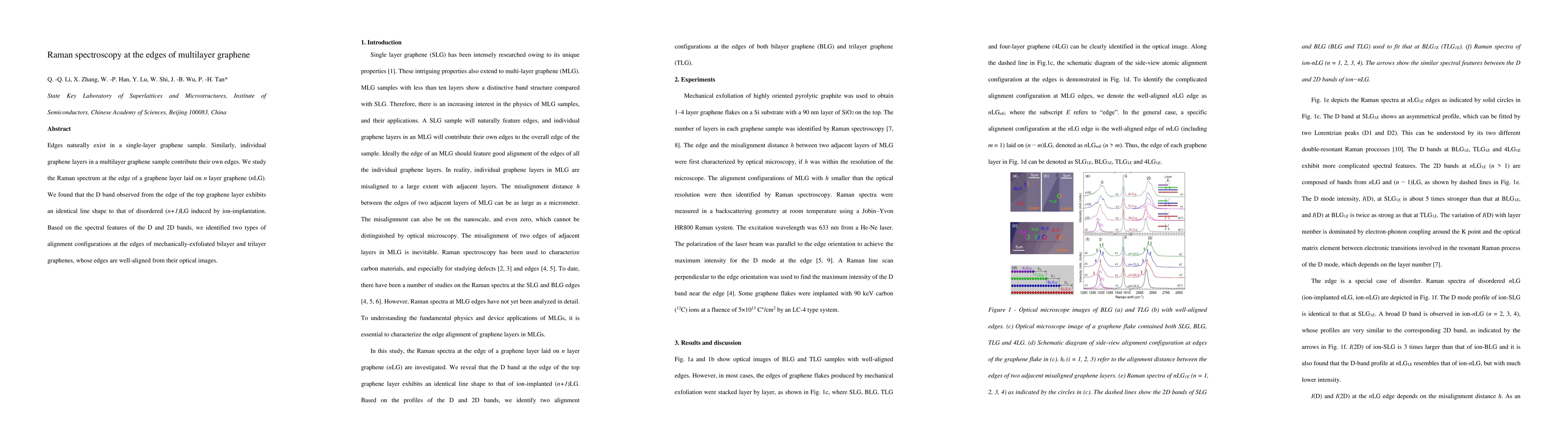 The study investigates Raman spectroscopy at the edges of multilayer graphene, revealing that the D band from the top layer's edge matches that of disordered multilayer graphene, and identifies two distinct edge alignment configurations based on D and 2D band spectral features.