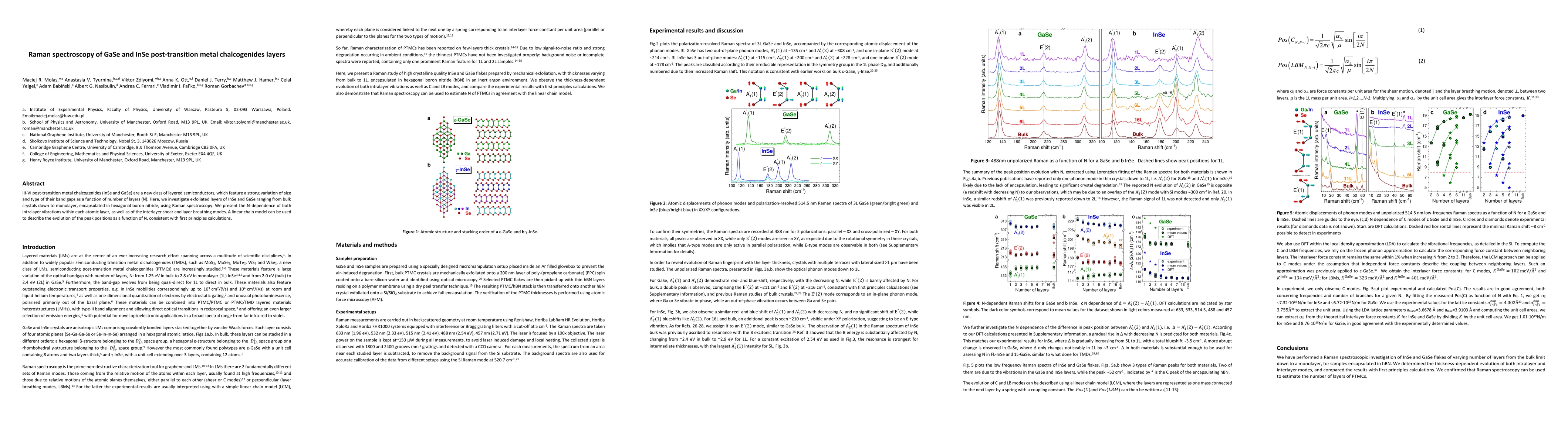 This paper investigates the Raman spectroscopy of exfoliated layers of InSe and GaSe, revealing the N-dependence of intralayer vibrations and interlayer modes. A linear chain model effectively describes the peak positions' evolution, aligning with first principles calculations.