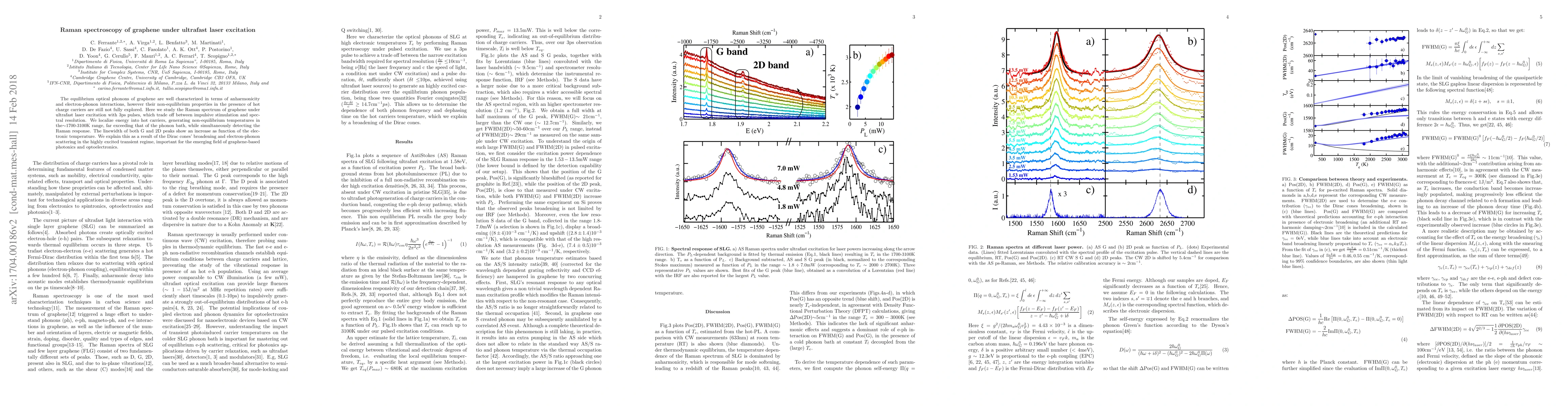 This study investigates the Raman spectrum of graphene under ultrafast laser excitation, observing increased linewidths in G and 2D peaks correlating with elevated electronic temperatures. The findings reveal the effects of Dirac cones' broadening and electron-phonon scattering in graphene's non-equilibrium state, significant for graphene-based photonic applications.