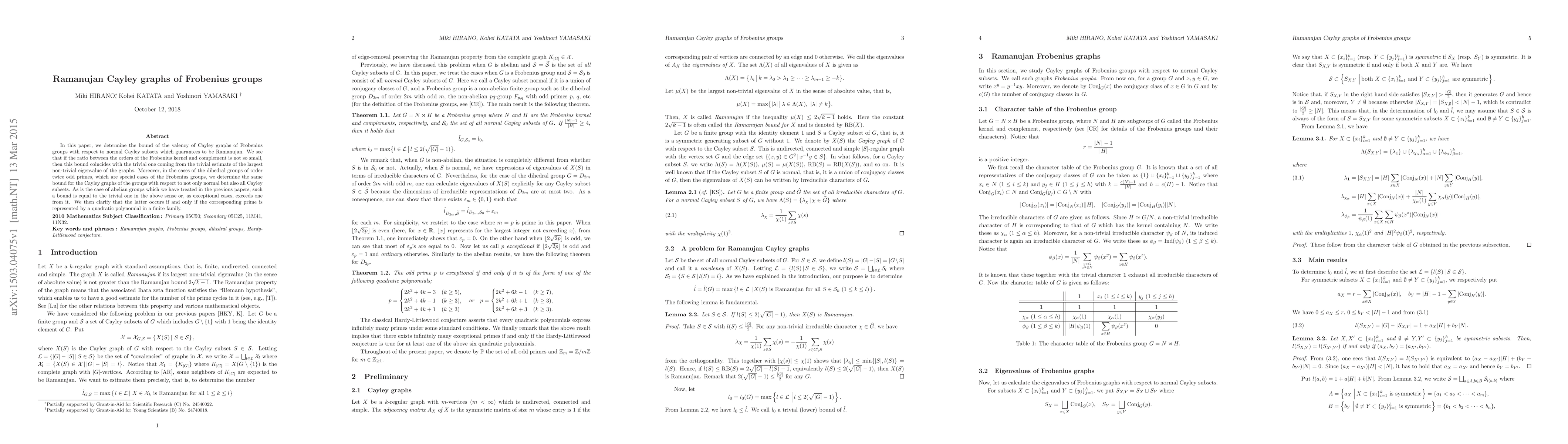 This paper investigates the valency bounds for Cayley graphs of Frobenius groups to be Ramanujan, showing that if the ratio of the kernel to complement is not small, the bound aligns with trivial estimates. For dihedral groups of order twice odd primes, the same bound applies to all Cayley subsets, and exceptional exceeding cases are linked to primes represented by quadratic polynomials.
