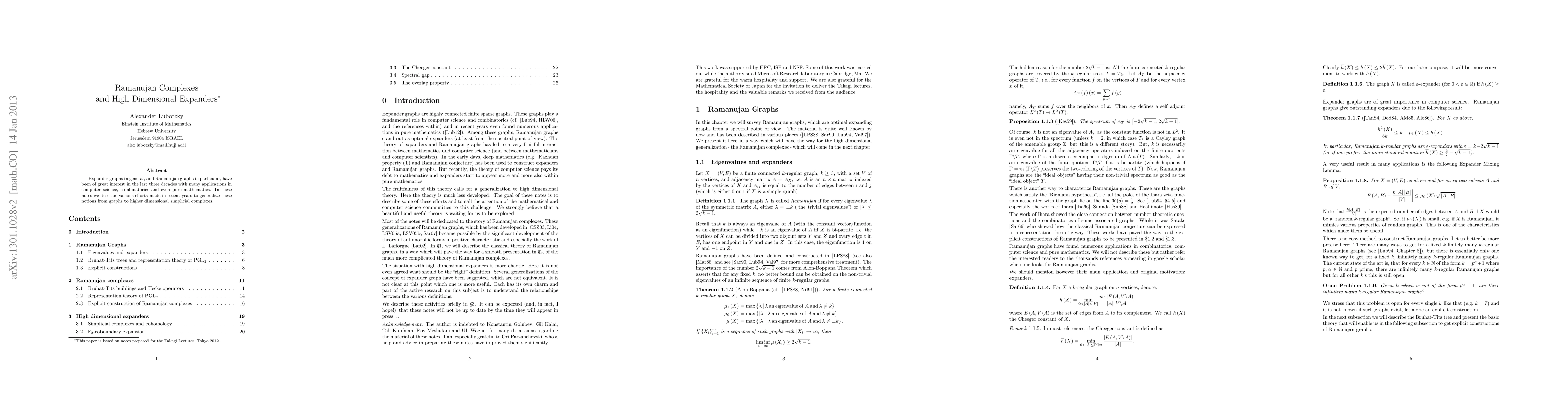 This paper discusses the extension of the concept of Ramanujan graphs to high-dimensional simplicial complexes, exploring their generalizations and potential applications in computer science, combinatorics, and pure mathematics.