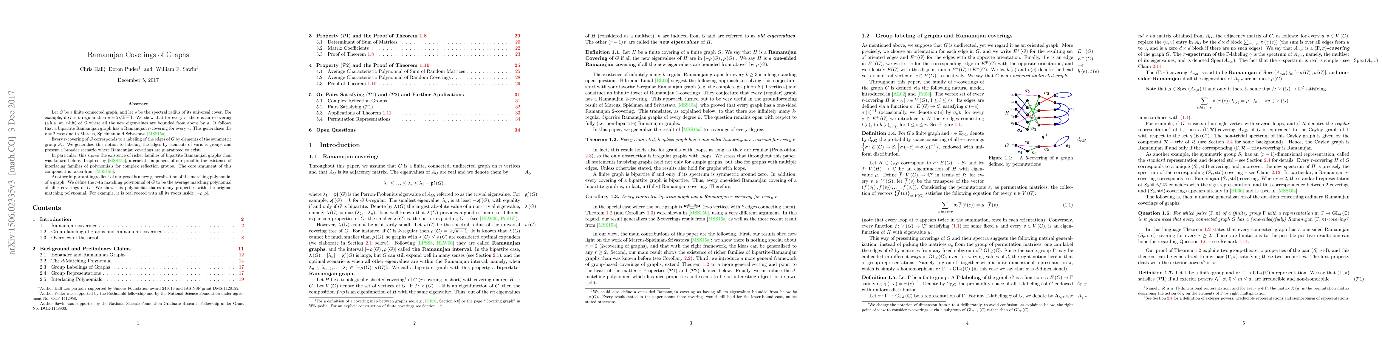 Let $G$ be a finite connected graph, and let $\rho$ be the spectral radius of its universal cover. For example, if $G$ is $k$-regular then $\rho=2\sqrt{k-1}$. We show that for every $r$, there is an $r$-covering (a.k.a. an $r$-lift) of $G$ where all the new eigenvalues are bounded from above by $\rho$. It follows that a bipartite Ramanujan graph has a Ramanujan $r$-covering for every $r$. This generalizes the $r=2$ case due to Marcus, Spielman and Srivastava (2013). Every $r$-covering of $G$ corresponds to a labeling of the edges of $G$ by elements of the symmetric group $S_{r}$. We generalize this notion to labeling the edges by elements of various groups and present a broader scenario where Ramanujan coverings are guaranteed to exist. In particular, this shows the existence of richer families of bipartite Ramanujan graphs than was known before. Inspired by Marcus-Spielman-Srivastava, a crucial component of our proof is the existence of interlacing families of polynomials for complex reflection groups. The core argument of this component is taken from a recent paper of them (2015). Another important ingredient of our proof is a new generalization of the matching polynomial of a graph. We define the $r$-th matching polynomial of $G$ to be the average matching polynomial of all $r$-coverings of $G$. We show this polynomial shares many properties with the original matching polynomial. For example, it is real rooted with all its roots inside $\left[-\rho,\rho\right]$.