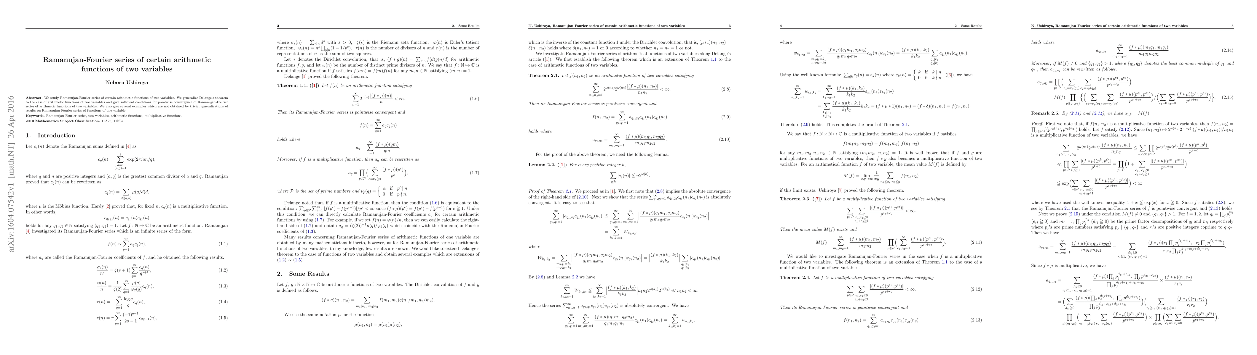 This paper generalizes Delange's theorem to two-variable arithmetic functions, providing conditions for the convergence of their Ramanujan-Fourier series, and includes examples that extend beyond one-variable results.