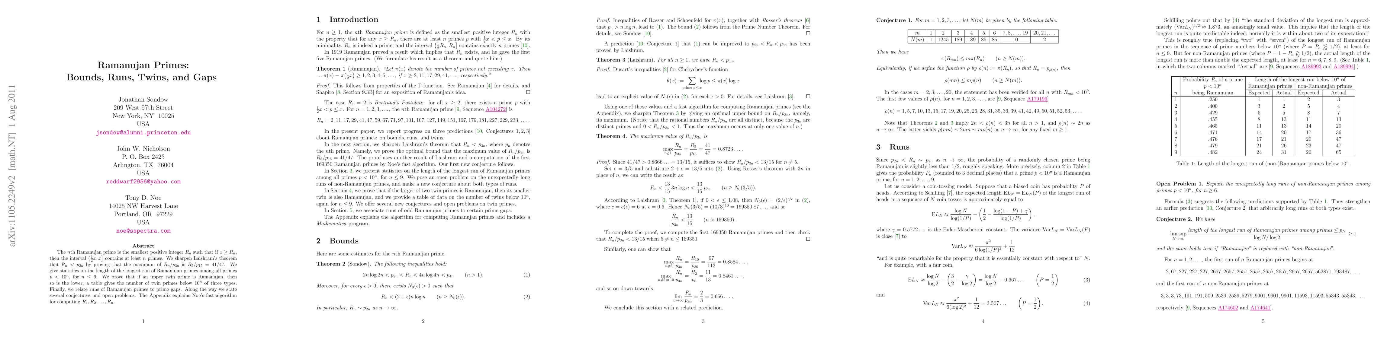 The $n$th Ramanujan prime is the smallest positive integer $R_n$ such that if $x \ge R_n$, then the interval $(x/2,x]$ contains at least $n$ primes. We sharpen Laishram's theorem that $R_n < p_{3n}$ by proving that the maximum of $R_n/p_{3n}$ is $R_5/p_{15} = 41/47$. We give statistics on the length of the longest run of Ramanujan primes among all primes $p<10^n$, for $n\le9$. We prove that if an upper twin prime is Ramanujan, then so is the lower; a table gives the number of twin primes below $10^n$ of three types. Finally, we relate runs of Ramanujan primes to prime gaps. Along the way we state several conjectures and open problems. The Appendix explains Noe's fast algorithm for computing $R_1,R_2,...,R_n$.