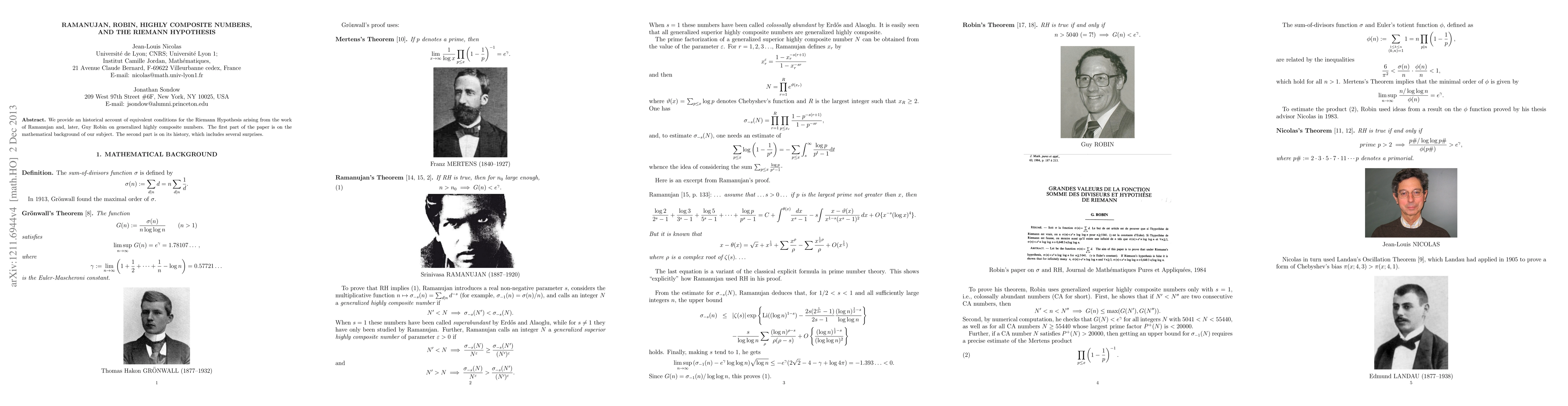 This paper explores the historical connections between Ramanujan's and Guy Robin's work on generalized highly composite numbers and their relevance to the Riemann Hypothesis. It provides a detailed mathematical background and a surprising historical account of the subject.