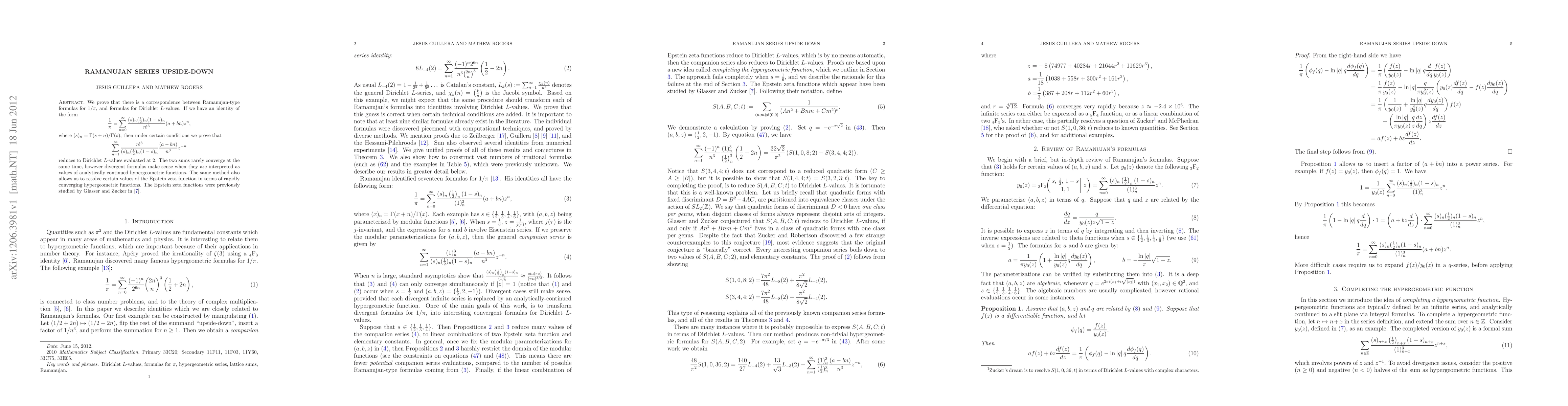 We prove that there is a correspondence between Ramanujan-type formulas for 1/\pi, and formulas for Dirichlet L-values. The same method also allows us to resolve certain values of the Epstein zeta function in terms of rapidly converging hypergeometric functions. The Epstein zeta functions were previously studied by Glasser and Zucker.