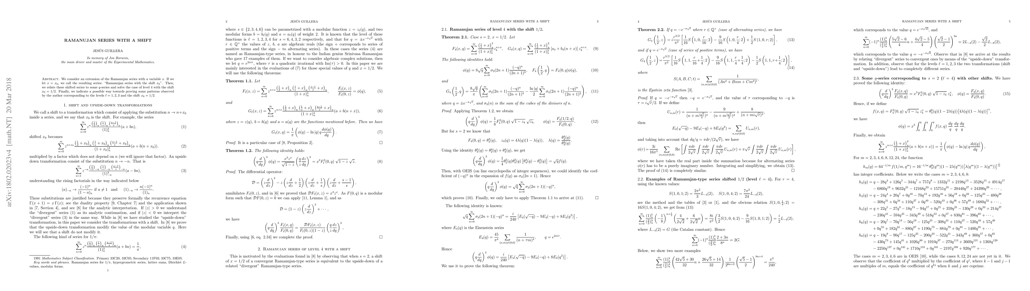 This paper extends Ramanujan's series by introducing a variable shift $x_0$ and explores its relation to $q$-series. It specifically solves the level $4$ case with $x_0=1/2$ and proposes a method to prove patterns observed for levels $\ell=1, 2, 3$ with the same shift.