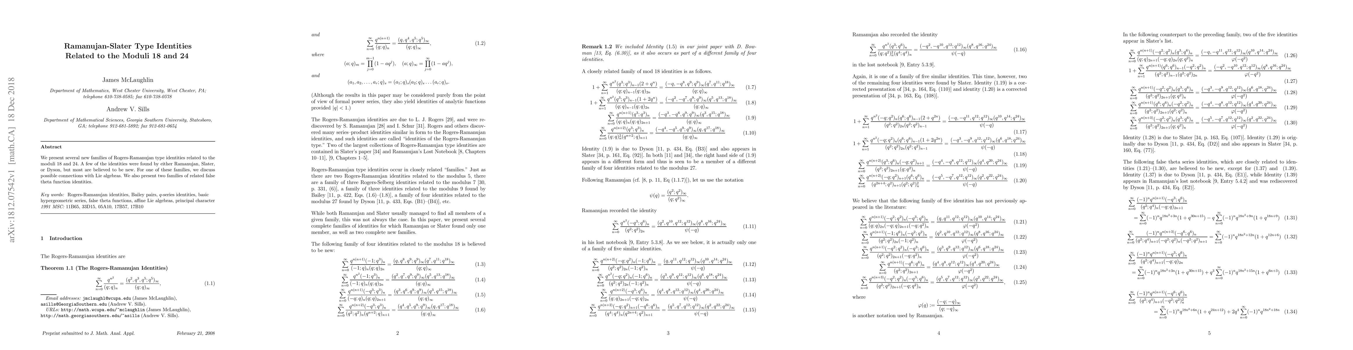 We present several new families of Rogers-Ramanujan type identities related to the moduli 18 and 24. A few of the identities were found by either Ramanujan, Slater, or Dyson, but most are believed to be new. For one of these families, we discuss possible connections with Lie algebras. We also present two families of related false theta function identities.