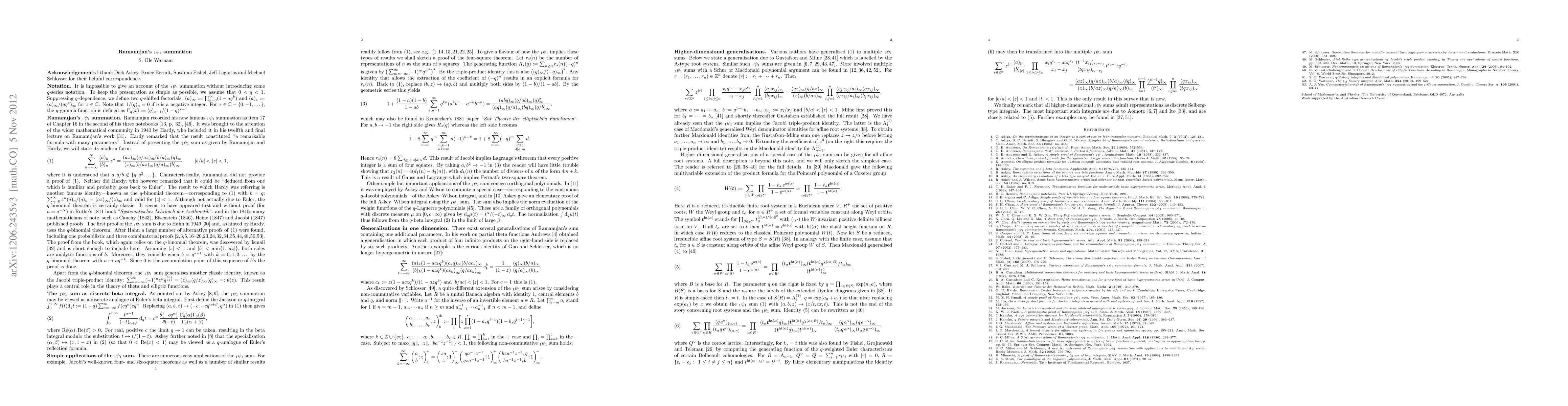 Summary: This paper reviews Ramanujan's {_1\psi_1} summation, tracing its historical development and exploring its applications to sums of squares and orthogonal polynomials, along with non-commutative and affine root system generalisations.
