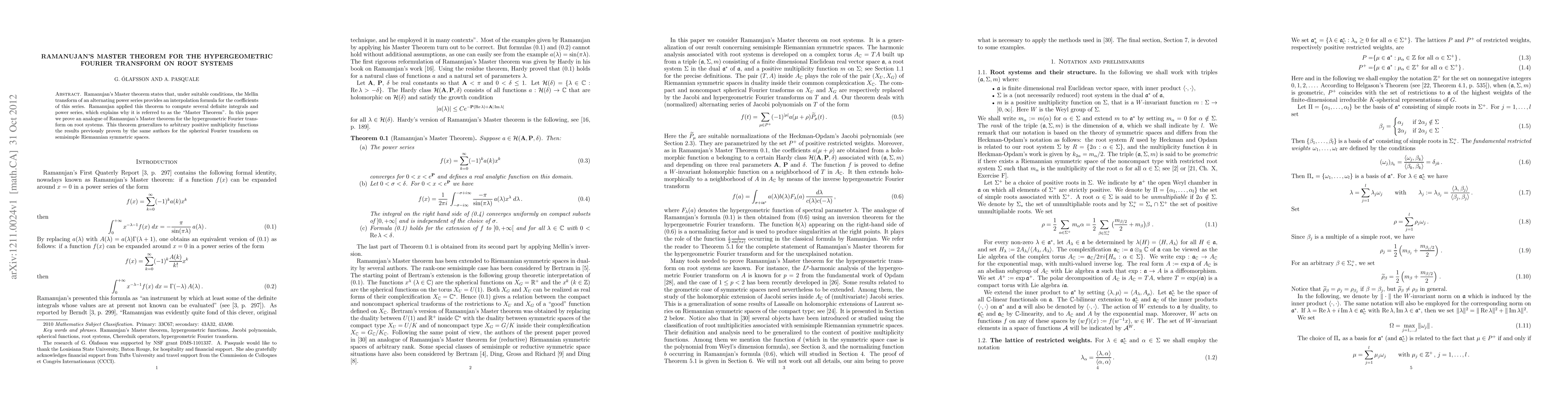 This paper proves an analogue of Ramanujan's Master theorem for the hypergeometric Fourier transform on root systems, generalizing previous results for the spherical Fourier transform on semisimple Riemannian symmetric spaces. The new theorem provides an interpolation formula for the coefficients of hypergeometric series under suitable conditions.