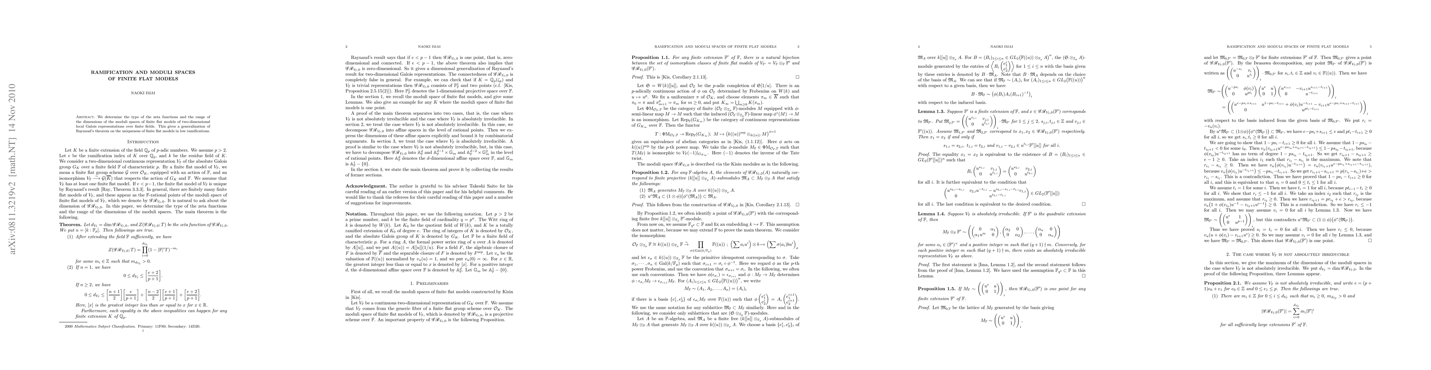 This paper studies 2D local Galois representations over finite fields, determining zeta function types and moduli space dimensions, with implications for uniqueness of finite flat models.
