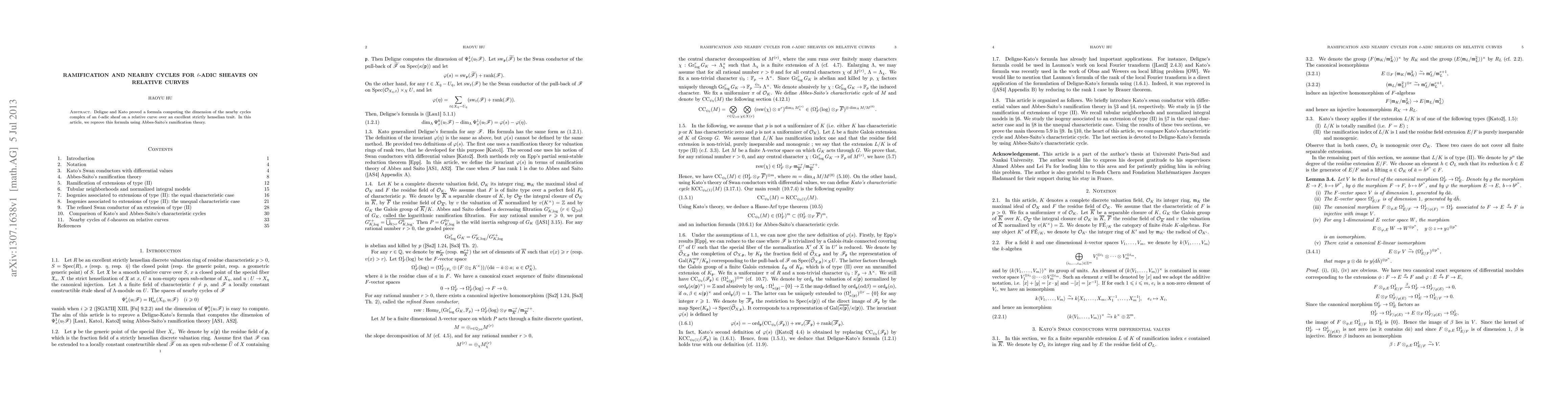 This paper reproves Deligne and Kato's formula for the dimension of the nearby cycles complex of l-adic sheaves on relative curves using Abbes-Saito's ramification theory, providing a new perspective on the computation.