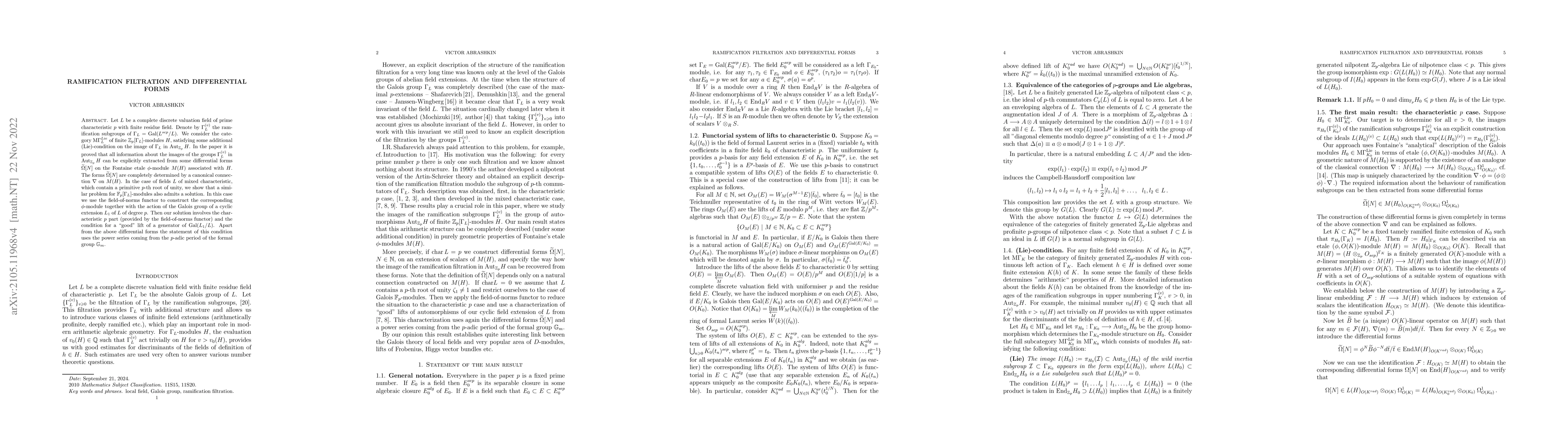 This paper explores the ramification filtration in complete discrete valuation fields of prime characteristic $p$, demonstrating how differential forms on Fontaine etale $\phi$-modules can explicitly extract information about the ramification subgroups. For fields of mixed characteristic, it constructs a solution using the field-of-norms functor and conditions involving a "good" lift of a cyclic group generator.