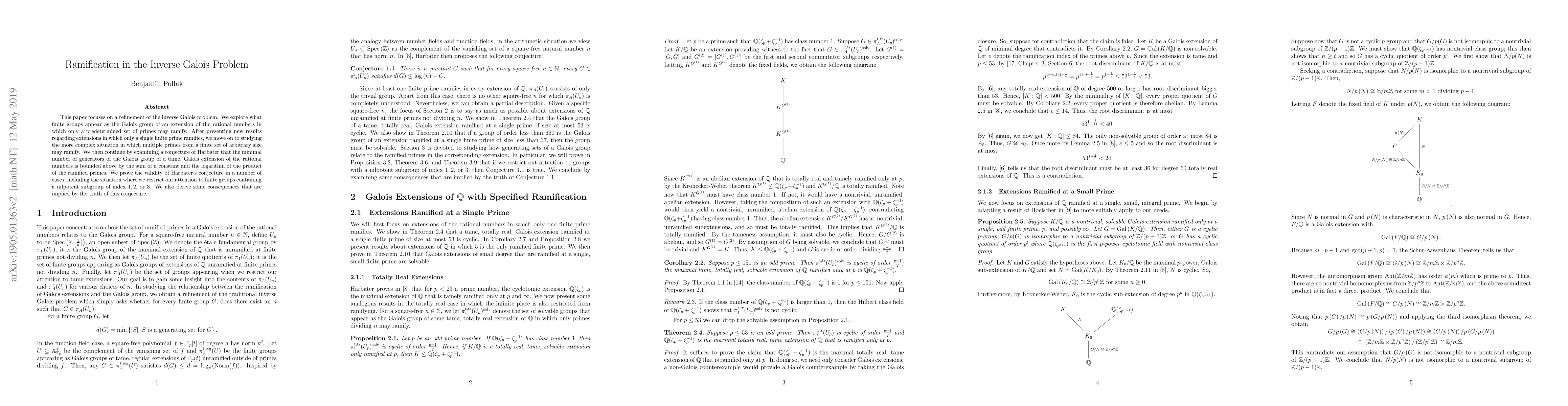 This paper focuses on a refinement of the inverse Galois problem. We explore what finite groups appear as the Galois group of an extension of the rational numbers in which only a predetermined set of primes may ramify. After presenting new results regarding extensions in which only a single finite prime ramifies, we move on to studying the more complex situation in which multiple primes from a finite set of arbitrary size may ramify. We then continue by examining a conjecture of Harbater that the minimal number of generators of the Galois group of a tame, Galois extension of the rational numbers is bounded above by the sum of a constant and the logarithm of the product of the ramified primes. We prove the validity of Harbater's conjecture in a number of cases, including the situation where we restrict our attention to finite groups containing a nilpotent subgroup of index $1,2,$ or $3$. We also derive some consequences that are implied by the truth of this conjecture.