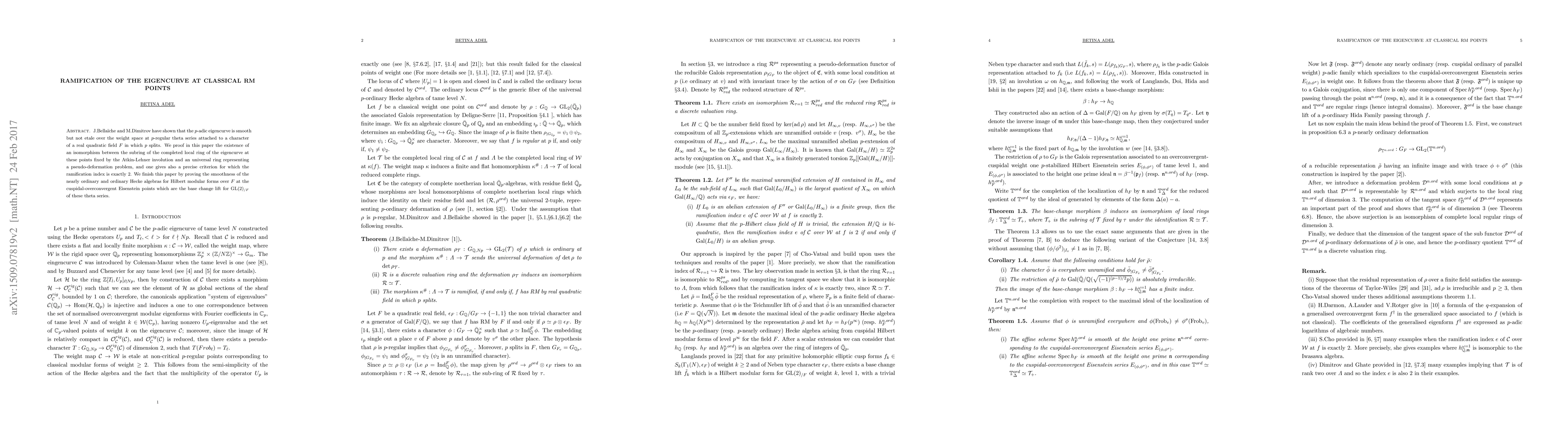 The paper establishes an isomorphism between a subring of the eigencurve at classical RM points and a universal ring representing a pseudo-deformation problem, shedding light on ramification properties.