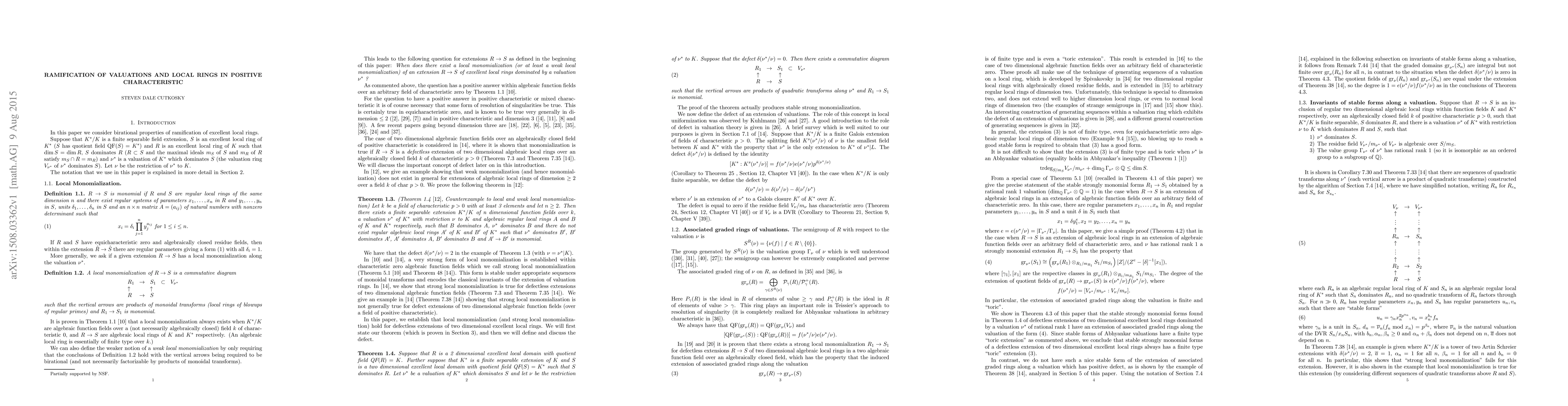 In this paper we consider birational properties of ramification in excellent local rings. We extend earlier results of the author with Olivier Piltant to show that strong local monomialization is true along a valuation dominating a defectless extension of two dimensional excellent local rings. We also obtain general results on the structure of the extension of associated graded rings along a valuation, and show that the invariants alpha and beta of stable forms of two dimensional extensions in characteristic p of the author and Olivier Piltant are not eventually constant.