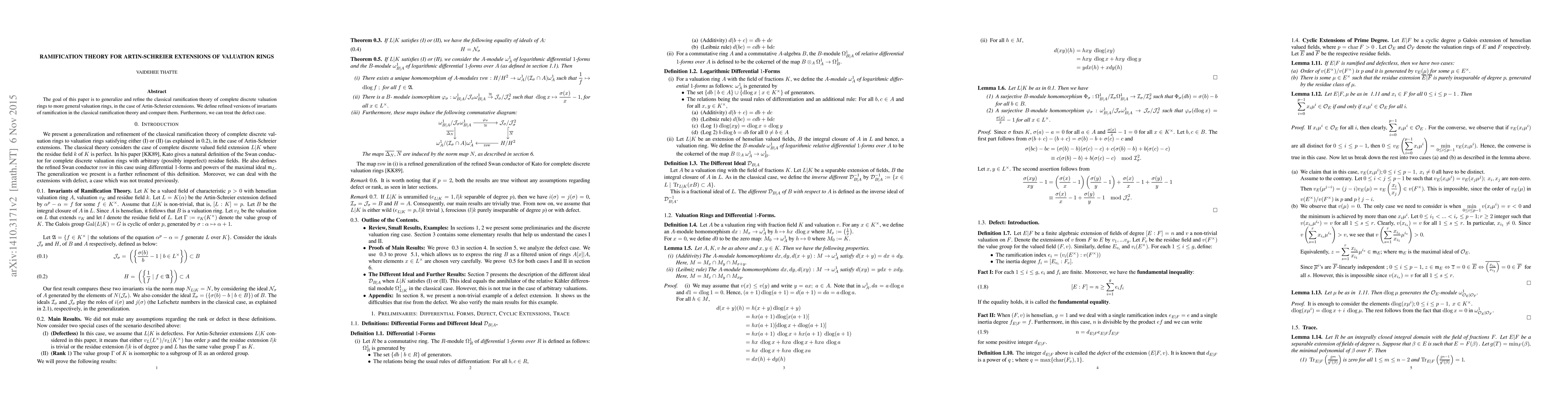 This paper generalizes classical ramification theory for complete discrete valuation rings to broader valuation rings, focusing on Artin-Schreier extensions. It introduces refined ramification invariants and addresses the defect case.