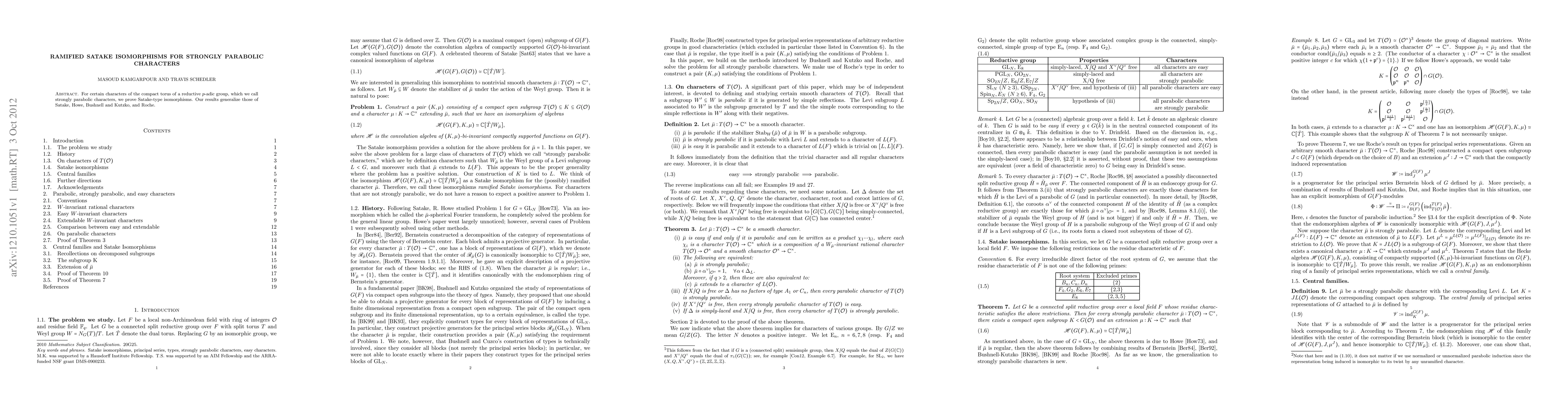 For certain characters of the compact torus of a reductive $p$-adic group, which we call strongly parabolic characters, we prove Satake-type isomorphisms. Our results generalize those of Satake, Howe, Bushnell and Kutzko, and Roche.