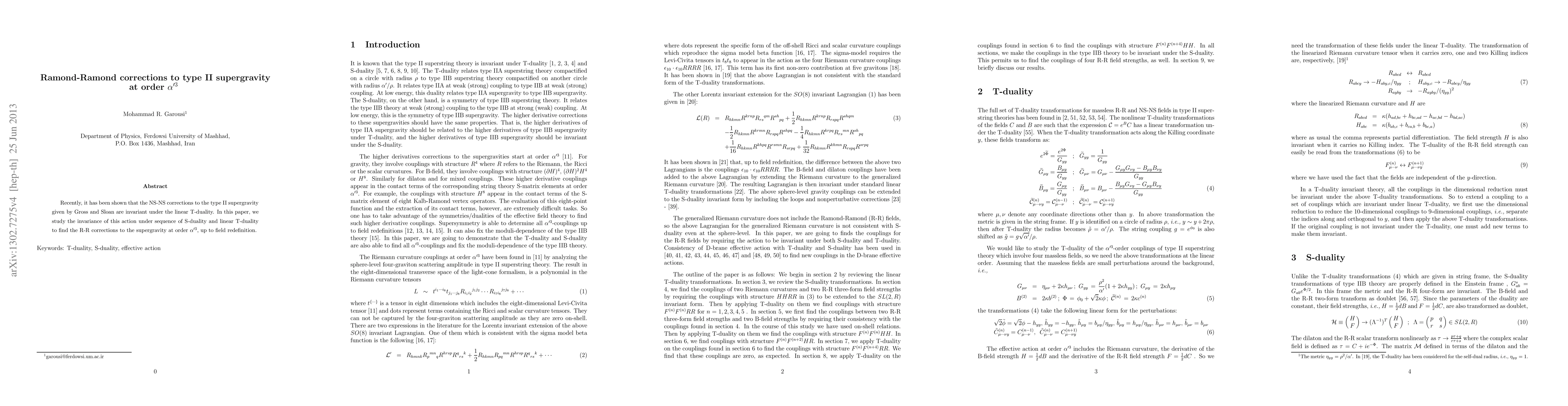 This paper investigates the invariance of Gross and Sloan's NS-NS corrections under S-duality and linear T-duality to determine the Ramond-Ramond (R-R) corrections to type II supergravity at order $\alpha'^3$, achieving results up to field redefinition.