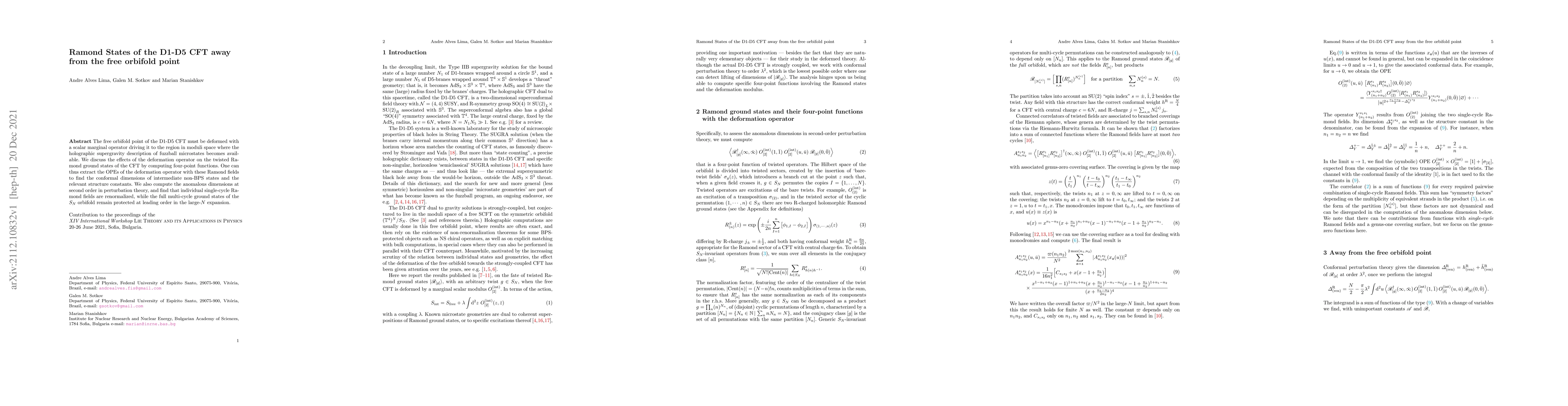 This paper investigates the effects of deforming the free orbifold point of the D1-D5 CFT with a scalar marginal operator, focusing on the twisted Ramond ground states. The authors compute four-point functions to extract the OPEs and find conformal dimensions of non-BPS states, revealing renormalization of individual single-cycle Ramond fields but protection of full multi-cycle ground states at leading order in the large-$N$ expansion.