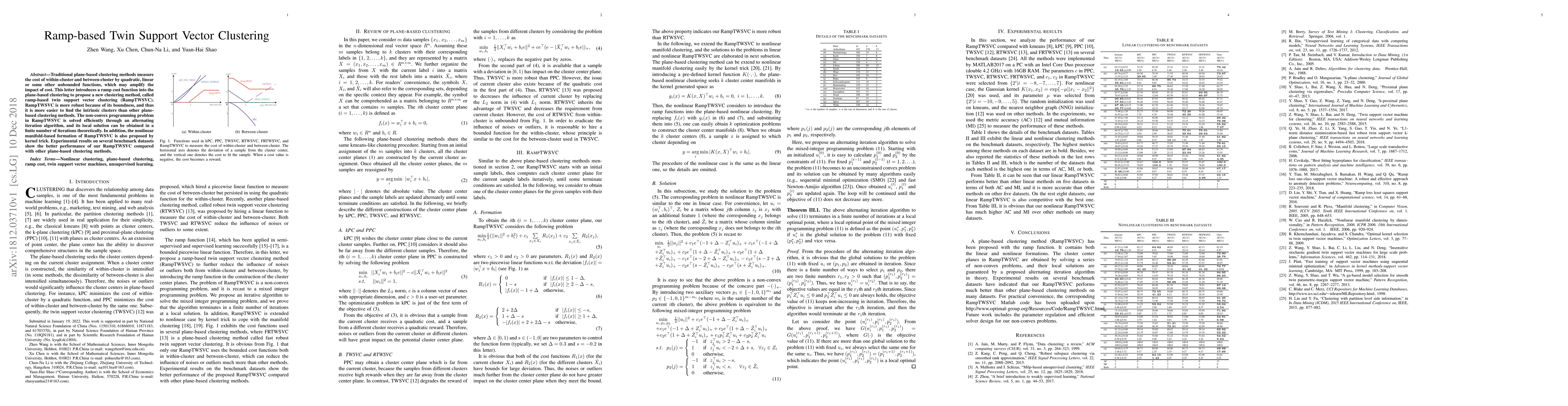 Ramp-based Twin Support Vector Clustering proposes a new method for clustering data that overcomes limitations of traditional methods by using a bounded cost function, leading to improved robustness and performance in finding intrinsic clusters.