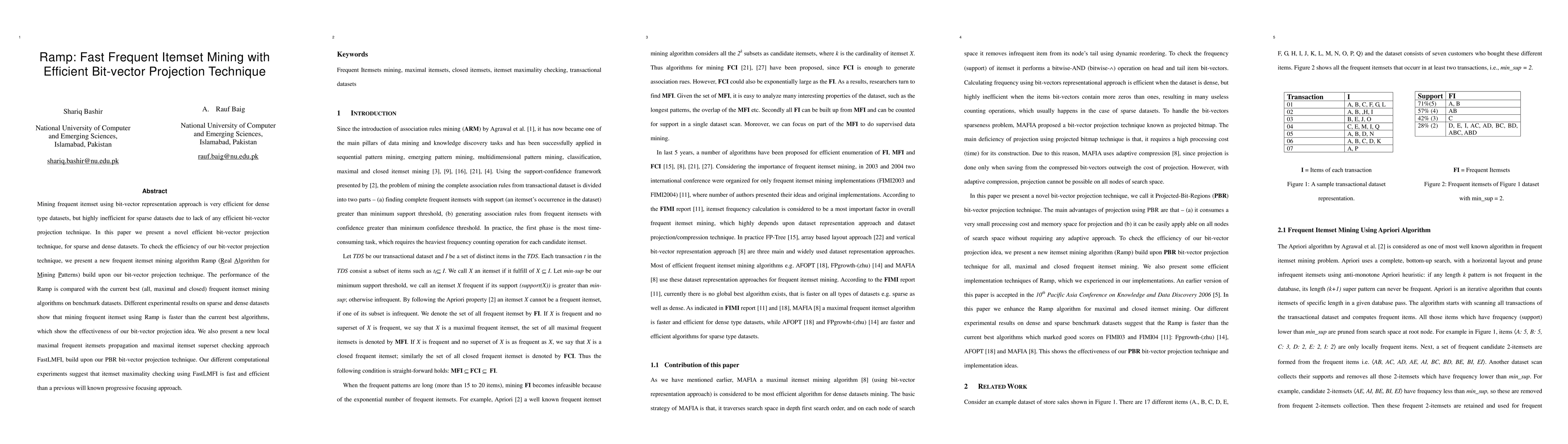 This paper introduces a novel efficient bit-vector projection technique for sparse and dense datasets, and presents the Ramp algorithm for fast frequent itemset mining based on this technique. Experimental results show that Ramp outperforms current best algorithms, demonstrating the effectiveness of the proposed bit-vector projection method.