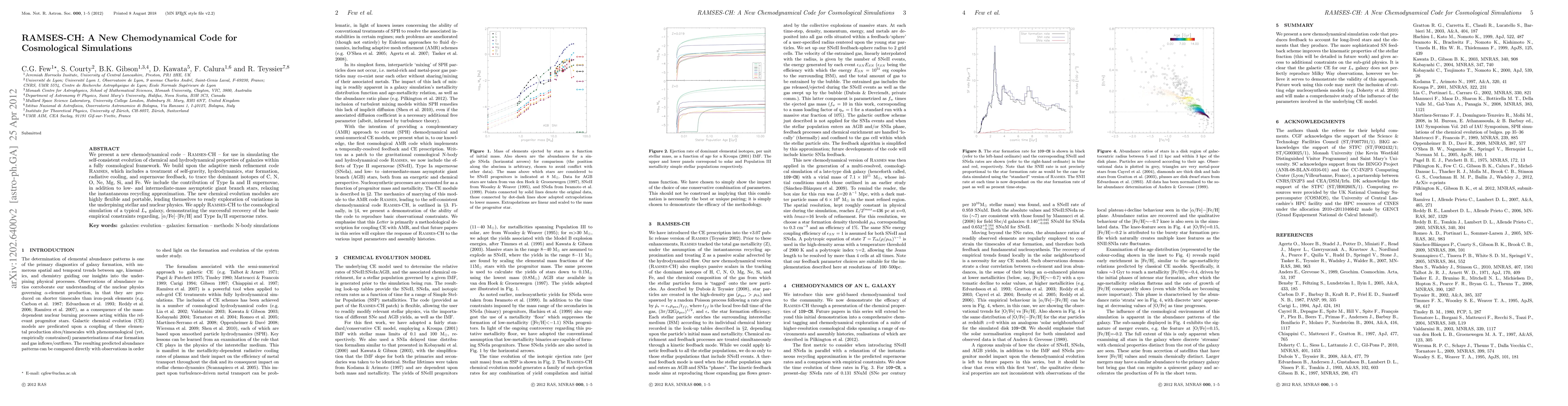 Ramses-CH is a new chemodynamical code that extends the adaptive mesh refinement code Ramses to simulate the evolution of chemical and hydrodynamical properties in galaxies. It successfully recovers empirical constraints on [{\alpha}/Fe]-[Fe/H] ratios and supernovae rates in cosmological simulations of typical L* galaxies.