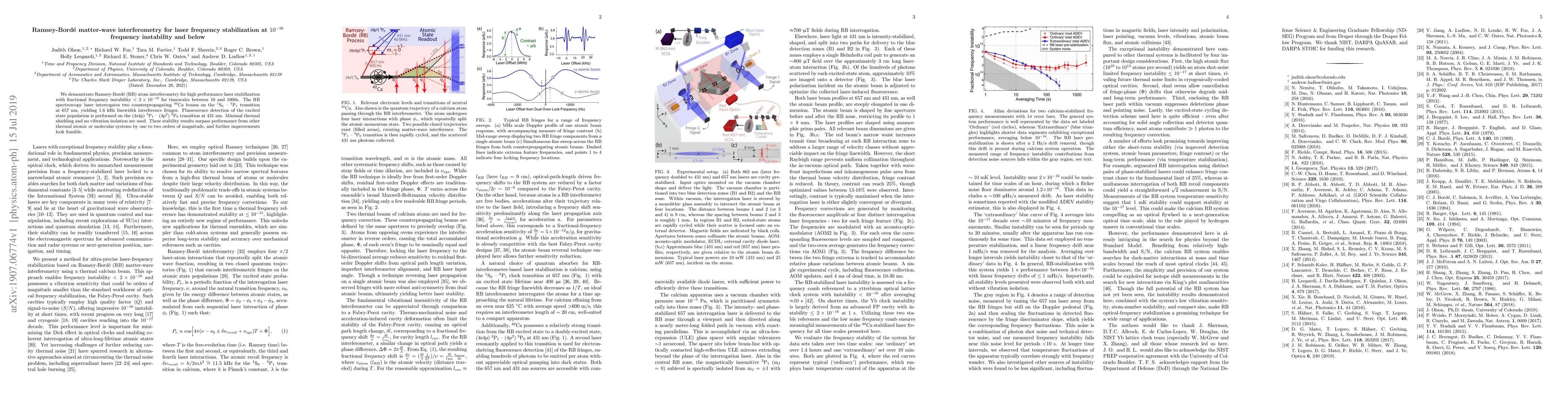 This paper demonstrates Ramsey-Bord\'e (RB) atom interferometry for laser stabilization achieving fractional frequency instability below $2 \times 10^{-16}$ over 10 to 1000 seconds, using $^{40}$Ca beams and surpassing other thermal atomic systems by one to two orders of magnitude.