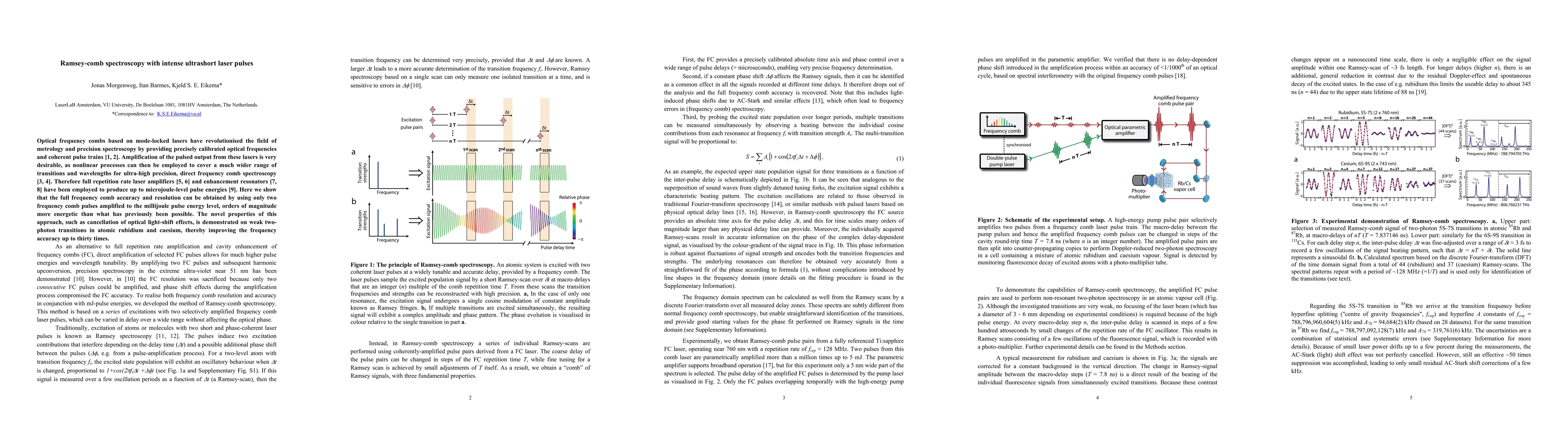 Optical frequency combs based on mode-locked lasers have revolutionised the field of metrology and precision spectroscopy by providing precisely calibrated optical frequencies and coherent pulse trains. Amplification of the pulsed output from these lasers is very desirable, as nonlinear processes can then be employed to cover a much wider range of transitions and wavelengths for ultra-high precision, direct frequency comb spectroscopy. Therefore full repetition rate laser amplifiers and enhancement resonators have been employed to produce up to microjoule-level pulse energies. Here we show that the full frequency comb accuracy and resolution can be obtained by using only two frequency comb pulses amplified to the millijoule pulse energy level, orders of magnitude more energetic than what has previously been possible. The novel properties of this approach, such as cancellation of optical light-shift effects, is demonstrated on weak two-photon transitions in atomic rubidium and caesium, thereby improving the frequency accuracy up to thirty times.