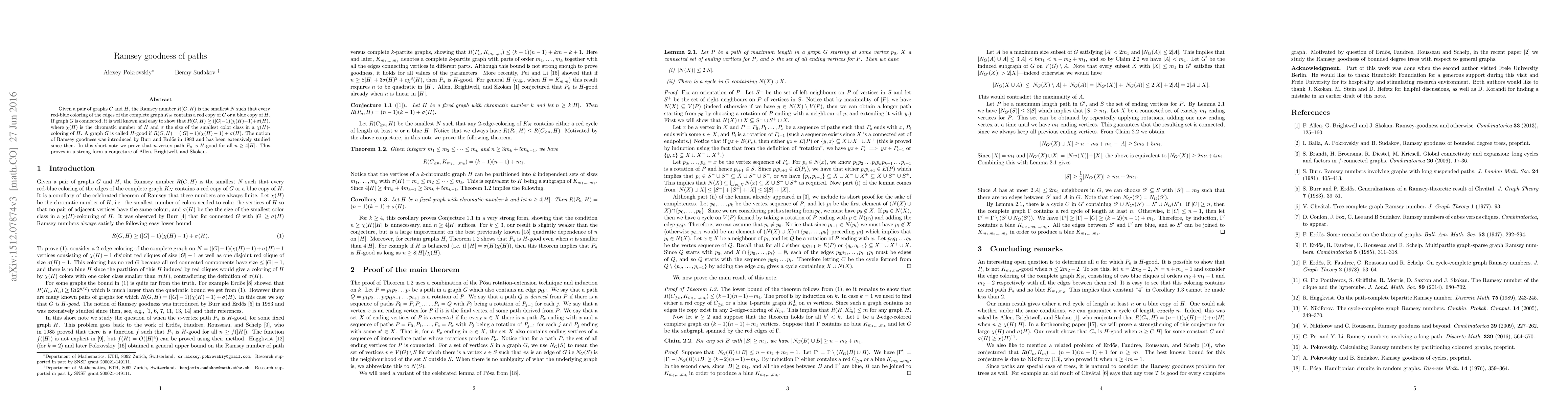This paper proves that for any $n$-vertex path $P_n$ with $n \geq 4|H|$, $P_n$ is $H$-good, meaning it satisfies the Ramsey number condition $R(P_n, H) = (|P_n|-1)(\chi(H)-1)+\sigma(H)$. This result supports a conjecture by Allen, Brightwell, and Skokan.