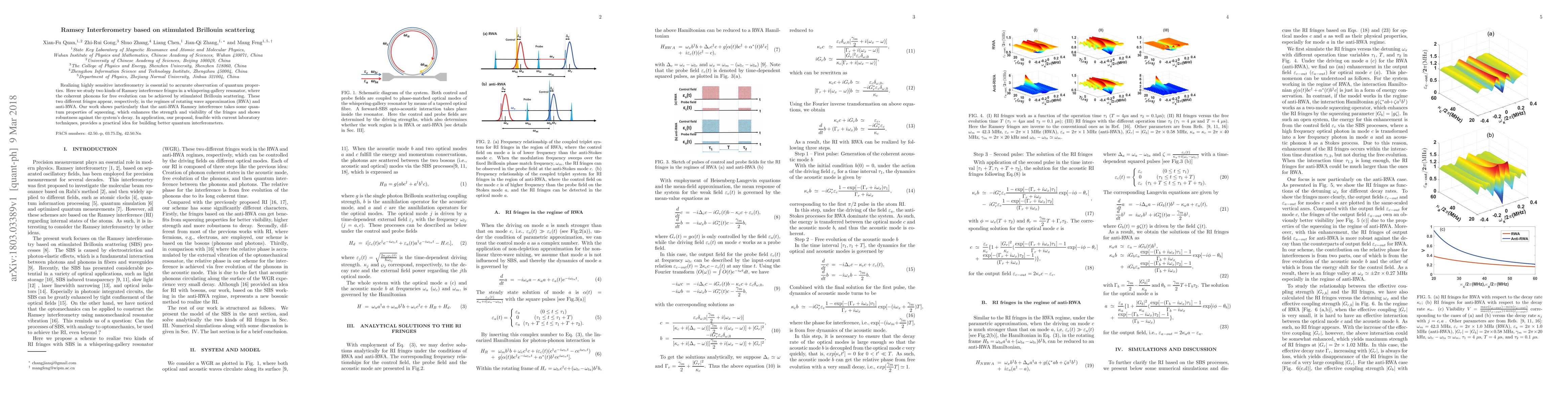 This paper proposes a Ramsey interferometry technique based on stimulated Brillouin scattering within a whispering-gallery resonator, demonstrating two types of interference fringes under rotating wave and anti-rotating wave approximations. The anti-RWA method exhibits enhanced fringe visibility and robustness, offering a practical approach for developing improved quantum interferometers.