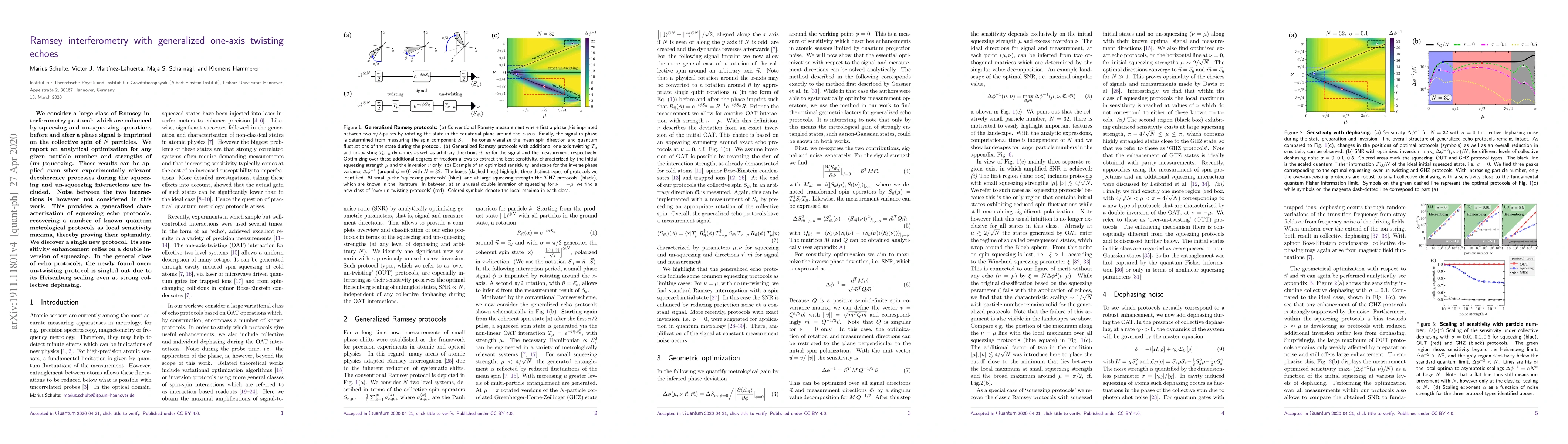 We consider a large class of Ramsey interferometry protocols which are enhanced by squeezing and un-squeezing operations before and after a phase signal is imprinted on the collective spin of $N$ particles. We report an analytical optimization for any given particle number and strengths of (un-)squeezing. These results can be applied even when experimentally relevant decoherence processes during the squeezing and un-squeezing interactions are included. Noise between the two interactions is however not considered in this work. This provides a generalized characterization of squeezing echo protocols, recovering a number of known quantum metrological protocols as local sensitivity maxima, thereby proving their optimality. We discover a single new protocol. Its sensitivity enhancement relies on a double inversion of squeezing. In the general class of echo protocols, the newly found over-un-twisting protocol is singled out due to its Heisenberg scaling even at strong collective dephasing.