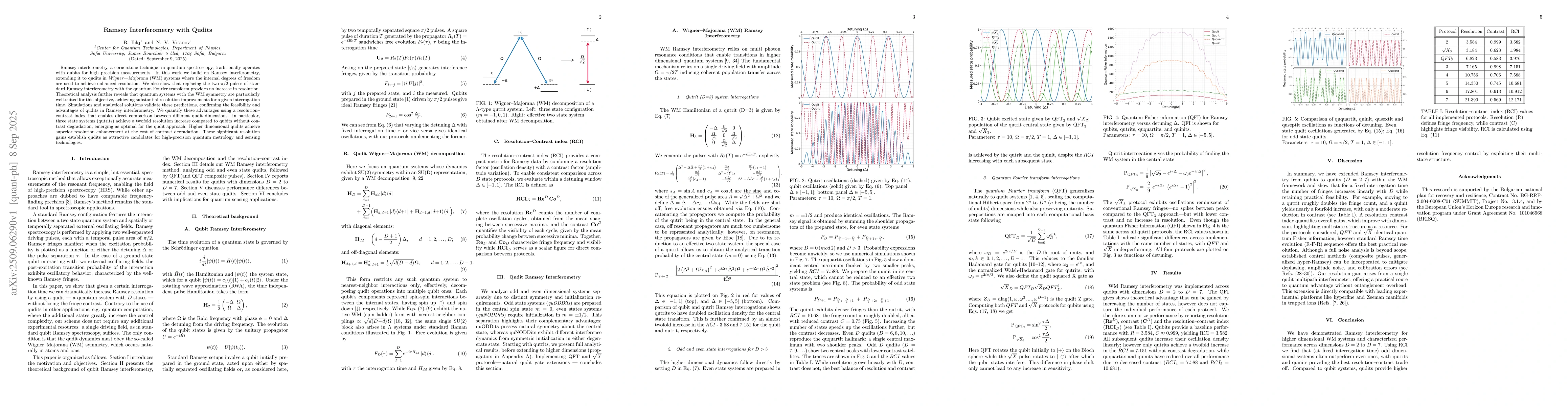 Ramsey interferometry, a cornerstone technique in quantum spectroscopy, traditionally operates with qubits for high precision measurements. In this work we build on Ramsey interferometry, extending it to qudits in Wigner-Majorana (WM) systems where the internal degrees of freedom are used to achieve enhanced resolution. We also show that replacing the two $\pi/2$ pulses of standard Ramsey interferometry with the quantum Fourier transform provides no increase in resolution. Theoretical analysis further reveals that quantum systems with the WM symmetry are particularly well-suited for this objective, achieving substantial resolution improvements for a given interrogation time. Simulations and analytical solutions validate these predictions, confirming the feasibility and advantages of qudits in Ramsey interferometry. We quantify these advantages using a resolution--contrast index that enables direct comparison between different qudit dimensions. In particular, three state systems (qutrits) achieve a twofold resolution increase compared to qubits without contrast degradation, emerging as optimal for the qudit approach. Higher dimensional qudits achieve superior resolution enhancement at the cost of contrast degradation. These significant resolution gains establish qudits as attractive candidates for high-precision quantum metrology and sensing technologies.