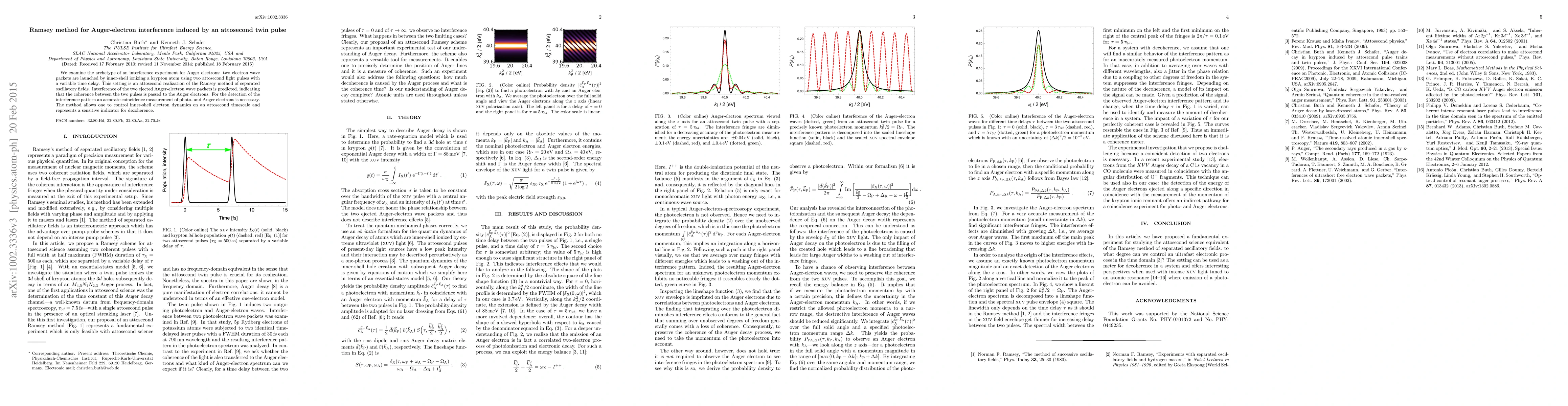 We examine the archetype of an interference experiment for Auger electrons: two electron wave packets are launched by inner-shell ionizing a krypton atom using two attosecond light pulses with a variable time delay. This setting is an attosecond realization of the Ramsey method of separated oscillatory fields. Interference of the two ejected Auger-electron wave packets is predicted, indicating that the coherence between the two pulses is passed to the Auger electrons. For the detection of the interference pattern an accurate coincidence measurement of photo- and Auger electrons is necessary. The method allows one to control inner-shell electron dynamics on an attosecond timescale and represents a sensitive indicator for decoherence.