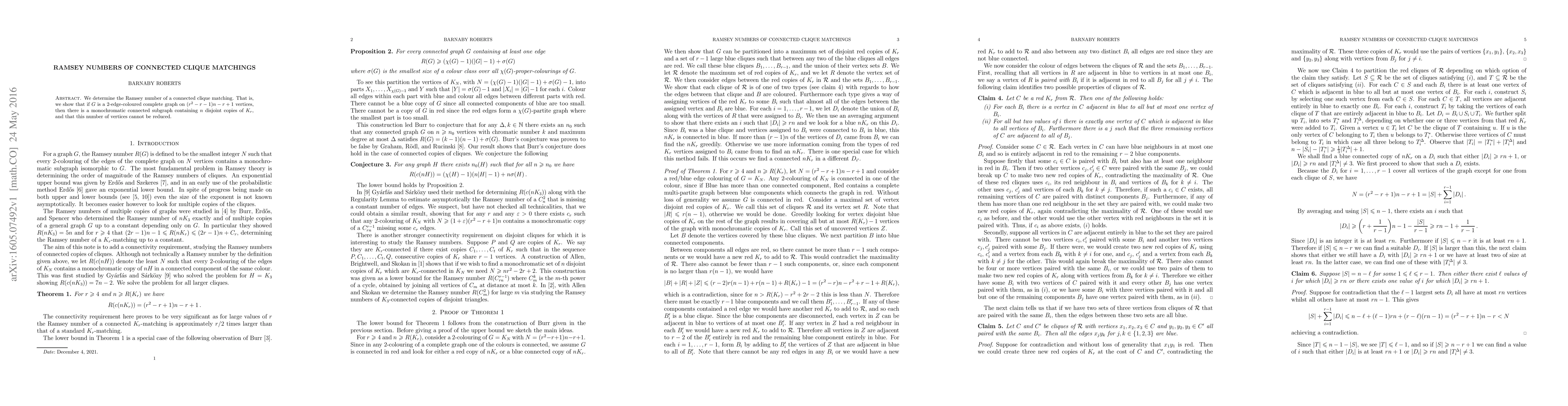 We determine the Ramsey number of a connected clique matching. That is, we show that if $G$ is a $2$-edge-coloured complete graph on $(r^2 - r - 1)n - r + 1$ vertices, then there is a monochromatic connected subgraph containing $n$ disjoint copies of $K_r$, and that this number of vertices cannot be reduced.