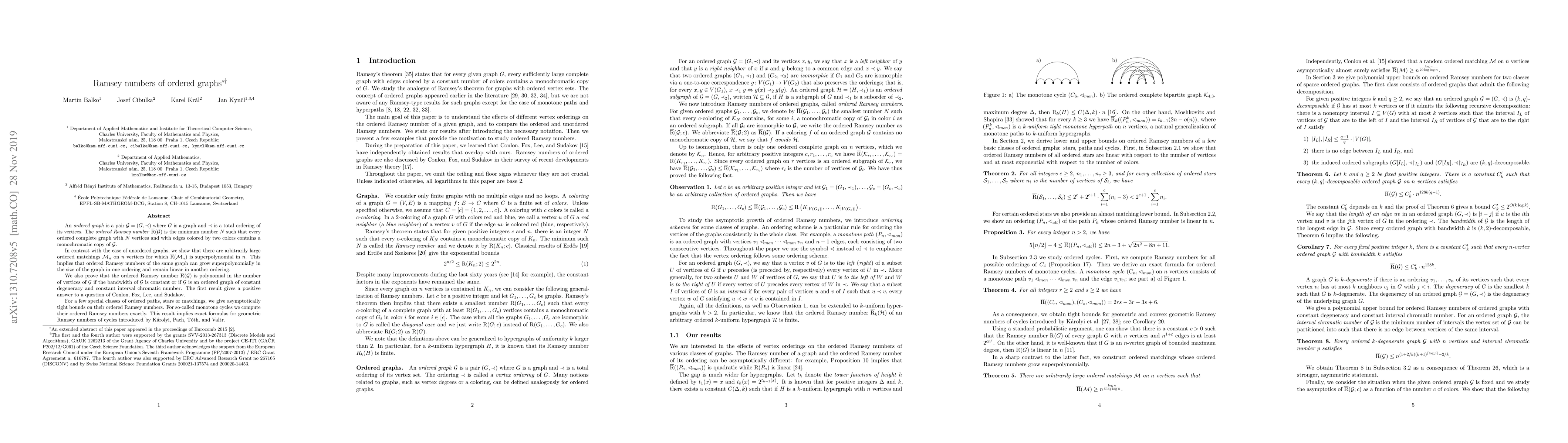 This paper investigates ordered Ramsey numbers, which pertain to ordered graphs where vertex orderings affect Ramsey properties. It demonstrates that ordered matchings can have superpolynomial ordered Ramsey numbers, contrasting with unordered graphs. Additionally, it proves that ordered Ramsey numbers are polynomial when the graph's bandwidth is constant or when the graph has constant degeneracy and interval chromatic number.