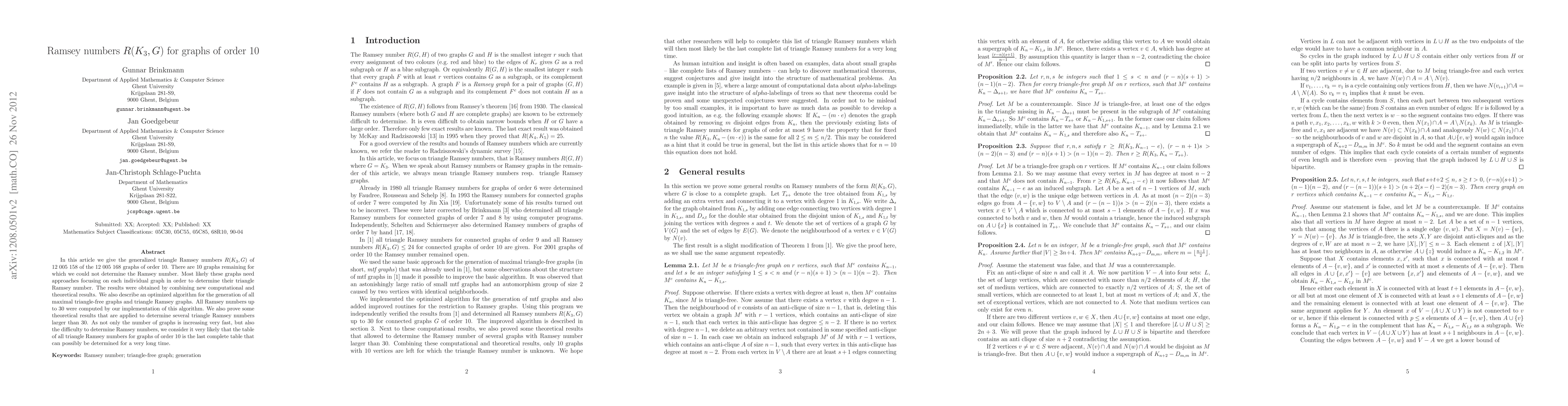 In this article we give the generalized triangle Ramsey numbers R(K3,G) of 12 005 158 of the 12 005 168 graphs of order 10. There are 10 graphs remaining for which we could not determine the Ramsey number. Most likely these graphs need approaches focusing on each individual graph in order to determine their triangle Ramsey number. The results were obtained by combining new computational and theoretical results. We also describe an optimized algorithm for the generation of all maximal triangle-free graphs and triangle Ramsey graphs. All Ramsey numbers up to 30 were computed by our implementation of this algorithm. We also prove some theoretical results that are applied to determine several triangle Ramsey numbers larger than 30. As not only the number of graphs is increasing very fast, but also the difficulty to determine Ramsey numbers, we consider it very likely that the table of all triangle Ramsey numbers for graphs of order 10 is the last complete table that can possibly be determined for a very long time.