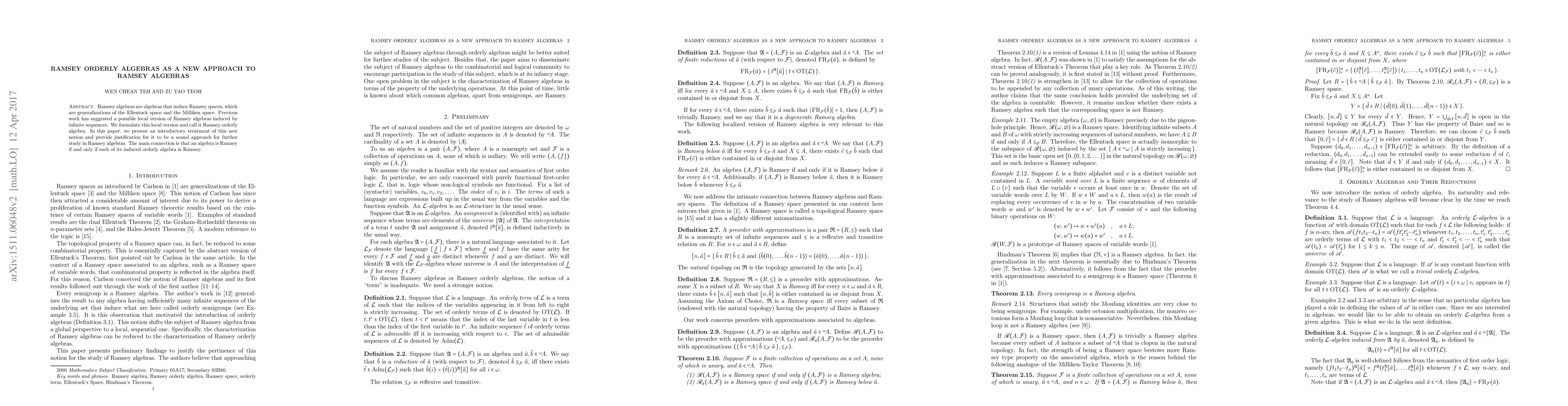 This paper introduces orderly algebras as a new framework for studying Ramsey algebras, showing that an algebra is Ramsey if and only if all its induced orderly algebras are Ramsey, thereby providing a robust foundation for future research in this area.