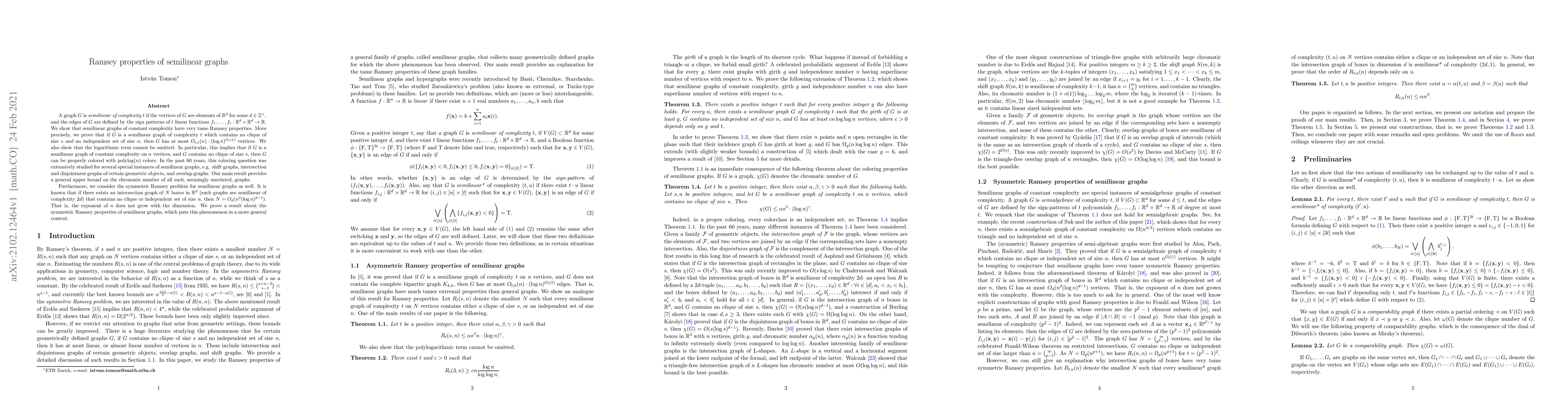 A graph $G$ is semilinear of complexity $t$ if the vertices of $G$ are elements of $\mathbb{R}^{d}$ for some $d\in\mathbb{Z}^{+}$, and the edges of $G$ are defined by the sign patterns of $t$ linear functions $f_1,\dots,f_t:\mathbb{R}^{d}\times \mathbb{R}^{d}\rightarrow\mathbb{R}$. We show that semilinear graphs of constant complexity have very tame Ramsey properties. More precisely, we prove that if $G$ is a semilinear graph of complexity $t$ which contains no clique of size $s$ and no independent set of size $n$, then $G$ has at most $O_{s,t}(n)\cdot(\log n)^{O_t(1)}$ vertices. We also show that the logarithmic term cannot be omitted. In particular, this implies that if $G$ is a semilinear graph of constant complexity on $n$ vertices, and $G$ contains no clique of size $s$, then $G$ can be properly colored with $\mbox{polylog}(n)$ colors. In the past 60 years, this coloring question was extensively studied for several special instances of semilinear graphs, e.g. shift graphs, intersection and disjointness graphs of certain geometric objects, and overlap graphs. Our main result provides a general upper bound on the chromatic number of all such, seemingly unrelated, graphs. Furthermore, we consider the symmetric Ramsey problem for semilinear graphs as well. It is known that if there exists an intersection graph of $N$ boxes in $\mathbb{R}^{d}$ (such graphs are semilinear of complexity $2d$) that contains no clique or independent set of size $n$, then $N=O_d(n^2(\log n)^{d-1})$. That is, the exponent of $n$ does not grow with the dimension. We prove a result about the symmetric Ramsey properties of semilinear graphs, which puts this phenomenon in a more general context.