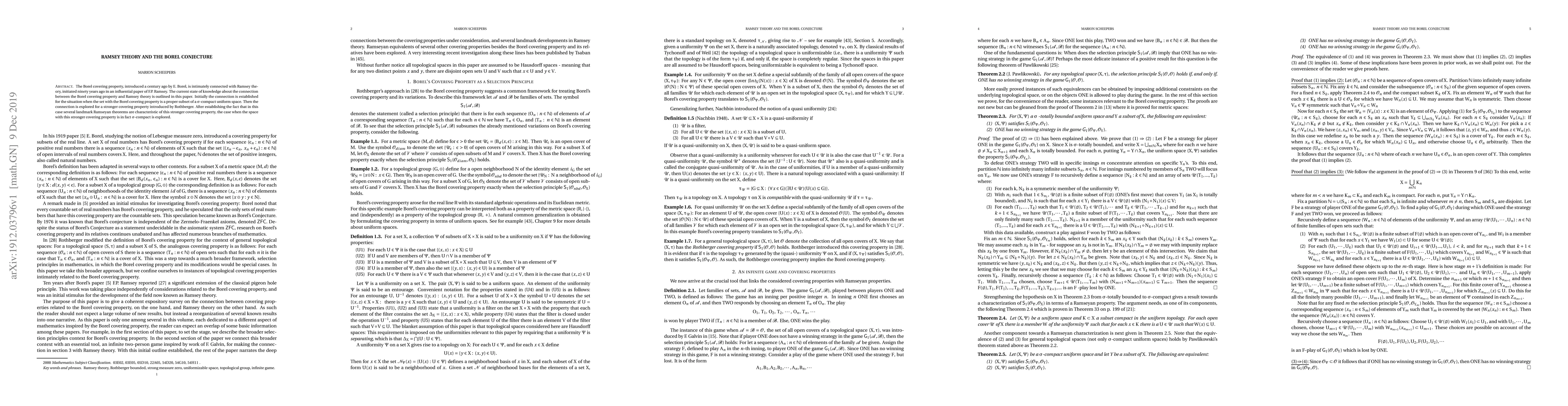 The Borel covering property, introduced a century ago by E. Borel, is intimately connected with Ramsey theory, initiated ninety years ago in an influential paper of F.P. Ramsey. The current state of knowledge about the connection between the Borel covering property and Ramsey theory is outlined in this paper. Initially the connection is established for the situation when the set with the Borel covering property is a proper subset of a $\sigma$-compact uniform space. Then the connection is explored for a stronger covering property introduced by Rothberger. After establishing the fact that in this case several landmark Ramseyan theorems are characteristic of this stronger covering property, the case when the space with this stronger covering property is in fact $\sigma$-compact is explored.