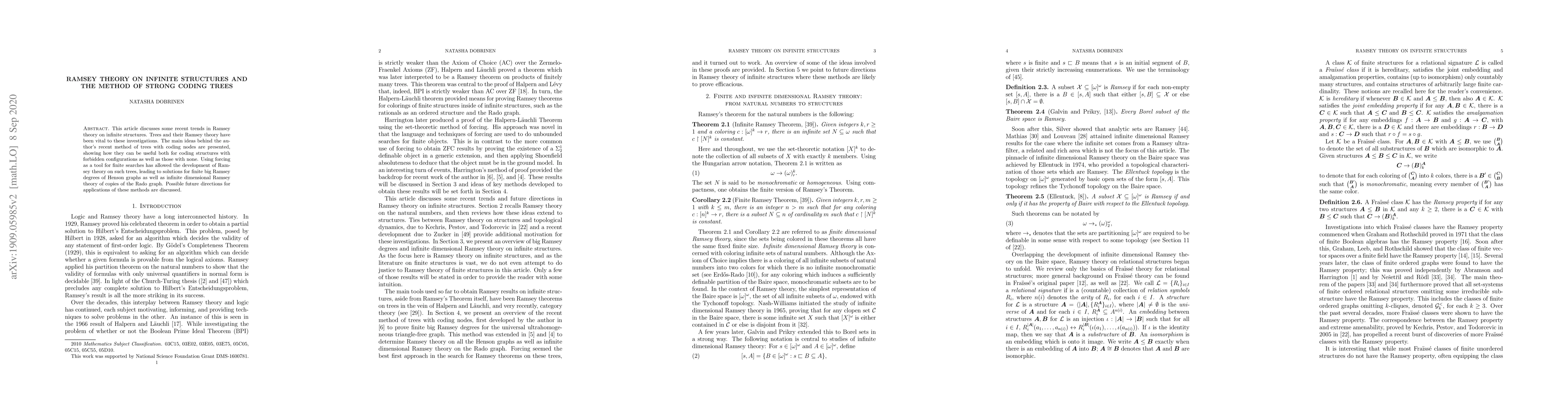 This paper explores recent advancements in Ramsey theory on infinite structures, focusing on trees and the novel method of strong coding trees. It demonstrates how these trees can code both structures with and without forbidden configurations, and highlights applications in determining Ramsey degrees and infinite-dimensional Ramsey theory.
