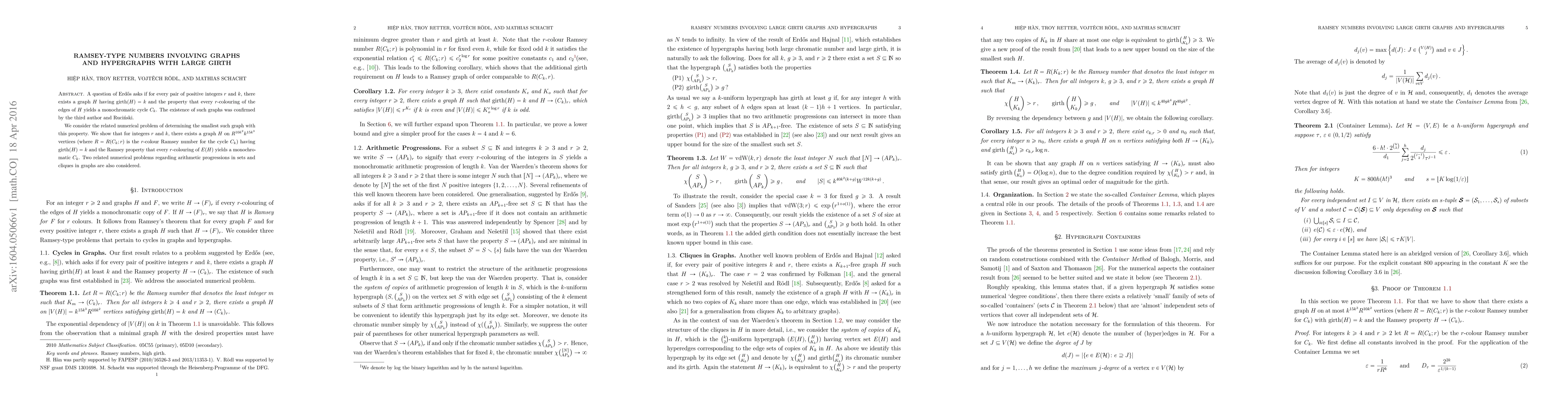 A question of Erd\H{o}s asks if for every pair of positive integers $r$ and $k$, there exists a graph $H$ having $\textrm{girth}(H)=k$ and the property that every $r$-colouring of the edges of $H$ yields a monochromatic cycle $C_k$. The existence of such graphs was confirmed by the third author and Ruci\'nski. We consider the related numerical problem of determining the smallest such graph with this property. We show that for integers $r$ and $k$, there exists a graph $H$ on $R^{10k^2} k^{15k^3}$ vertices (where $R = R(C_k;r)$ is the $r$-colour Ramsey number for the cycle $C_k$) having $\textrm{girth}(H)=k$ and the Ramsey property that every $r$-colouring of $E(H)$ yields a monochromatic $C_k$. Two related numerical problems regarding arithmetic progressions in sets and cliques in graphs are also considered.