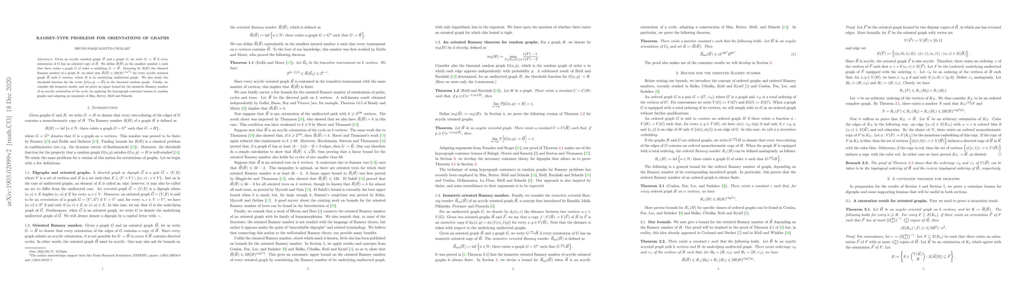 Given an acyclic oriented graph $\vec{H}$ and a graph $G$, we write $G \to \vec{H}$ if every orientation of $G$ has an oriented copy of $\vec{H}$. We define $\vec{R}(\vec{H})$ as the smallest number $n$ such that there exists a graph $G$ satisfying $G \to \vec{H}$. Denoting by $R(H)$ the classical Ramsey number of a graph $H$, we show that $\vec{R}(\vec{H}) \leq 2R(H)^{c \log^2 h}$ for every acyclic oriented graph $\vec{H}$ with $h$ vertices, where $H$ is its underlying undirected graph. We also study the threshold function for the event $\{G(n,p) \to \vec{H}\}$ in the binomial random graph $G(n,p)$. Finally, we consider the isometric case, in which we require that, for every two vertices $x, y \in V(\vec{H})$ and their respective copies $x', y'$ in $\vec{G}$, the distance between $x$ and $y$ is equal to the distance between $x'$ and $y'$. We prove an upper bound for the isometric Ramsey number of an acyclic orientation of the cycle, applying the hypergraph container lemma in random graphs.