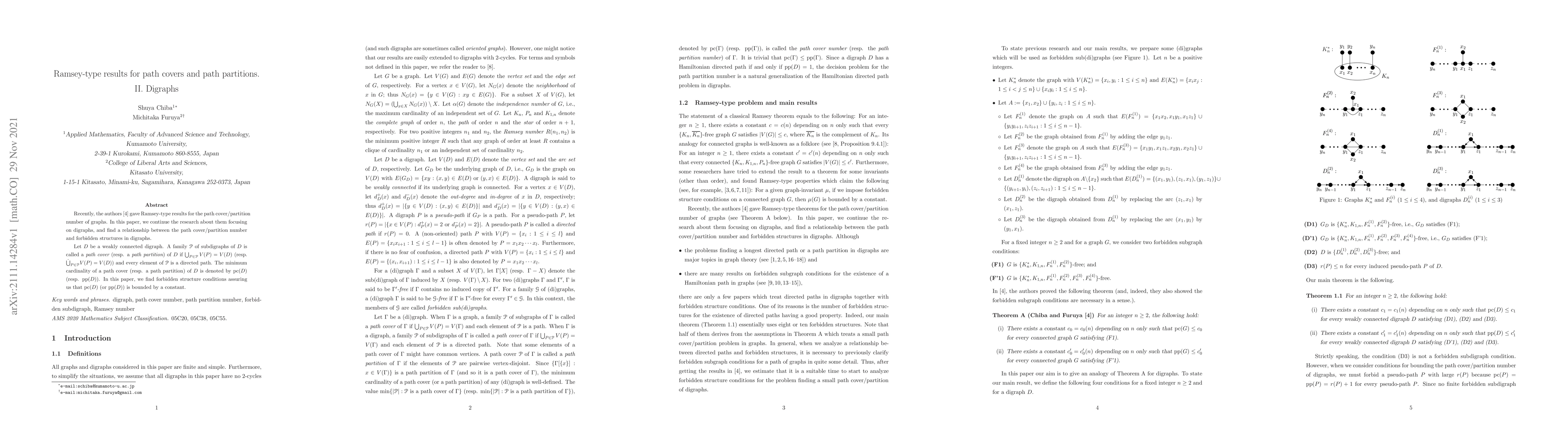 Recently, the authors gave Ramsey-type results for the path cover/partition number of graphs. In this paper, we continue the research about them focusing on digraphs, and find a relationship between the path cover/partition number and forbidden structures in digraphs. Let $D$ be a weakly connected digraph. A family $\mathcal{P}$ of subdigraphs of $D$ is called a {\it path cover} (resp. a {\it path partition}) of $D$ if $\bigcup _{P\in \mathcal{P}}V(P)=V(D)$ (resp. $\dot\bigcup _{P\in \mathcal{P}}V(P)=V(D)$) and every element of $\mathcal{P}$ is a directed path. The minimum cardinality of a path cover (resp. a path partition) of $D$ is denoted by ${\rm pc}(D)$ (resp. ${\rm pp}(D)$). In this paper, we find forbidden structure conditions assuring us that ${\rm pc}(D)$ (or ${\rm pp}(D)$) is bounded by a constant.