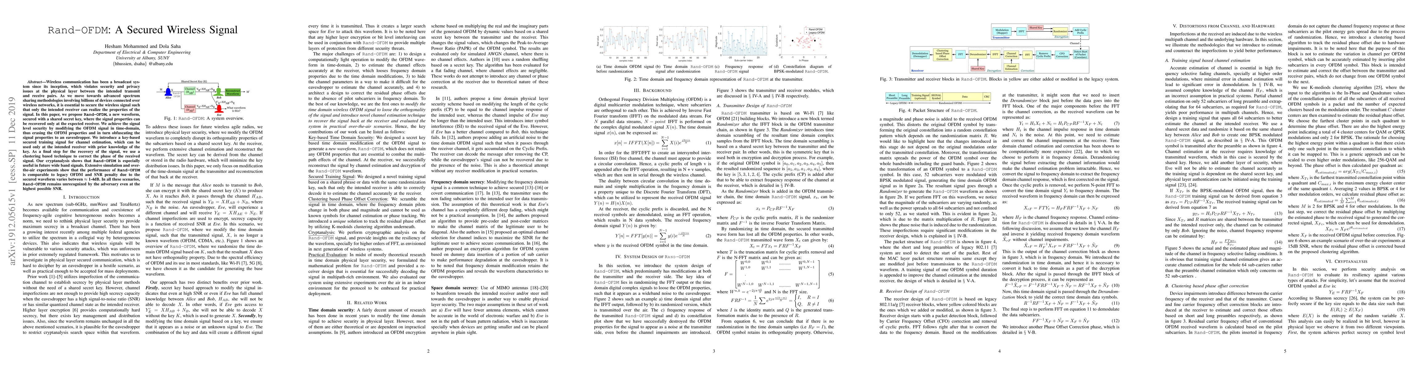 This paper proposes Rand-OFDM, a new waveform that secures wireless signals with a shared secret key, ensuring only the intended receiver can recover signal properties, while maintaining comparable performance to legacy OFDM.